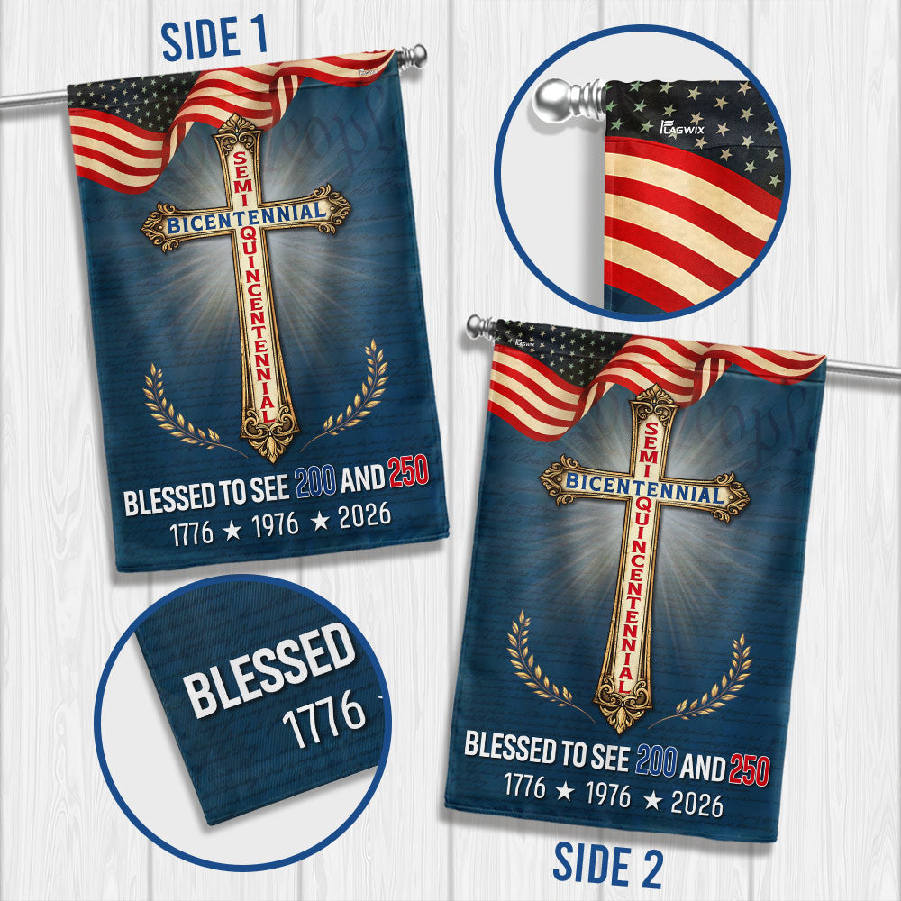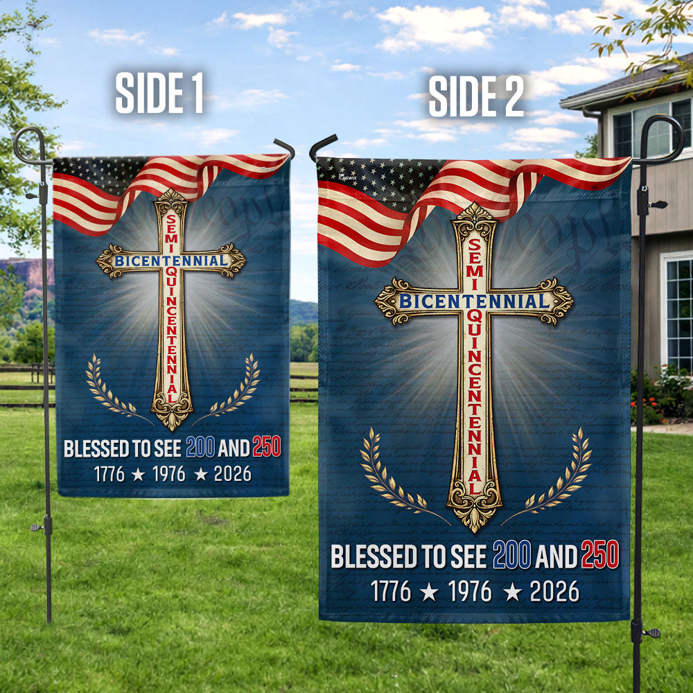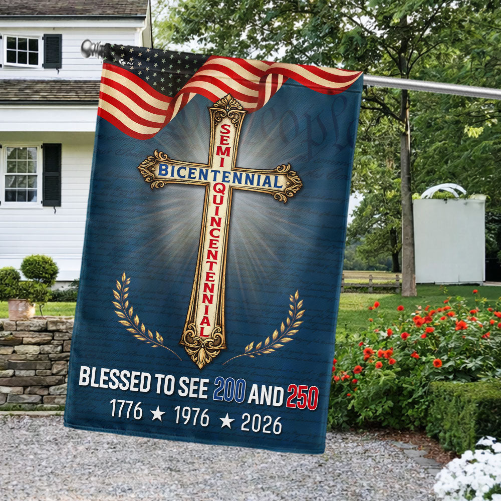Blessed to see 200 and 250 Christian Garden Flag, Bicentennial Semiquincentennial Patriotic Flag Decor