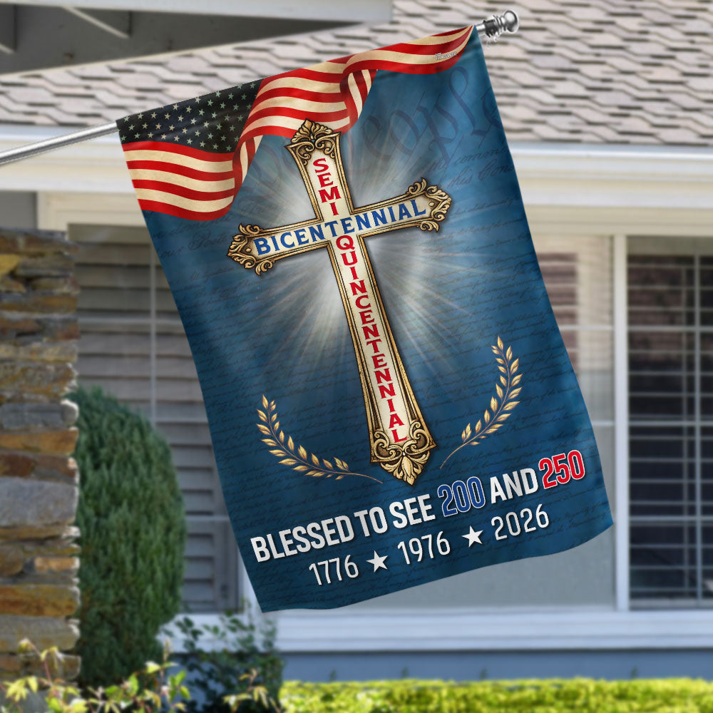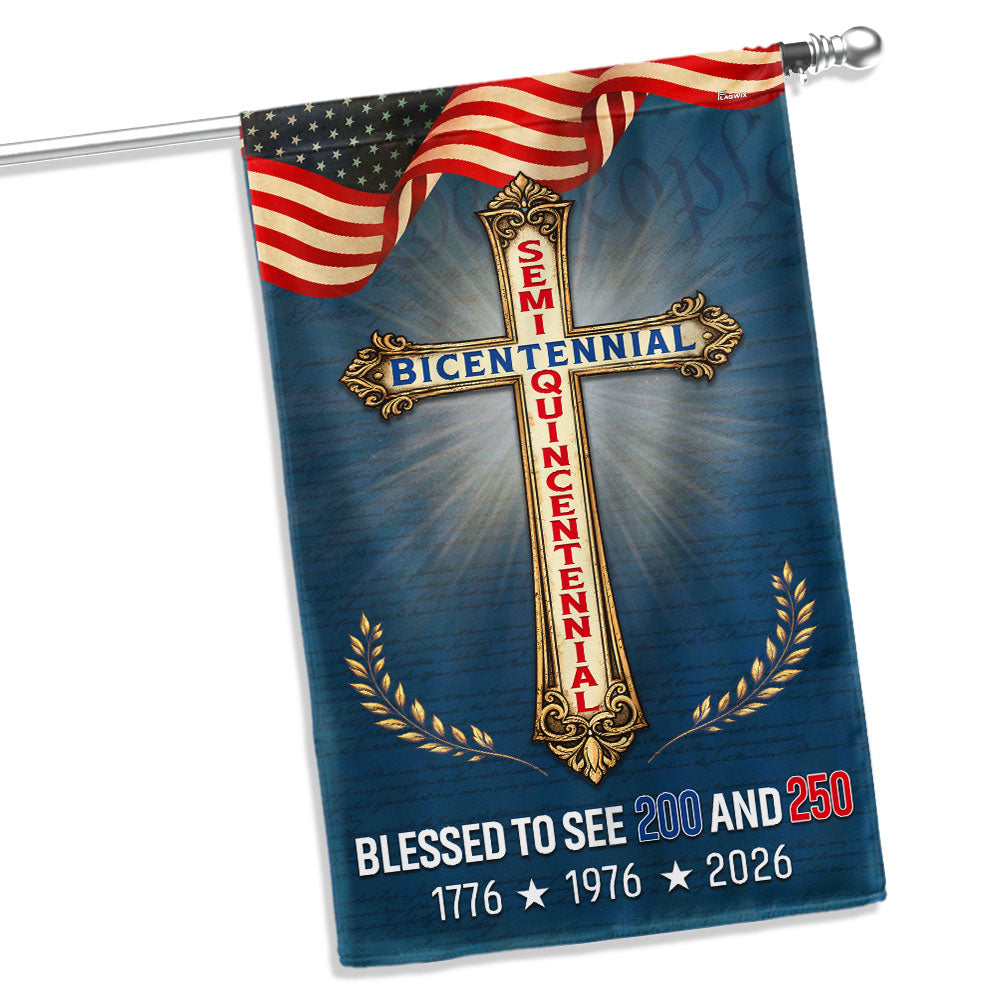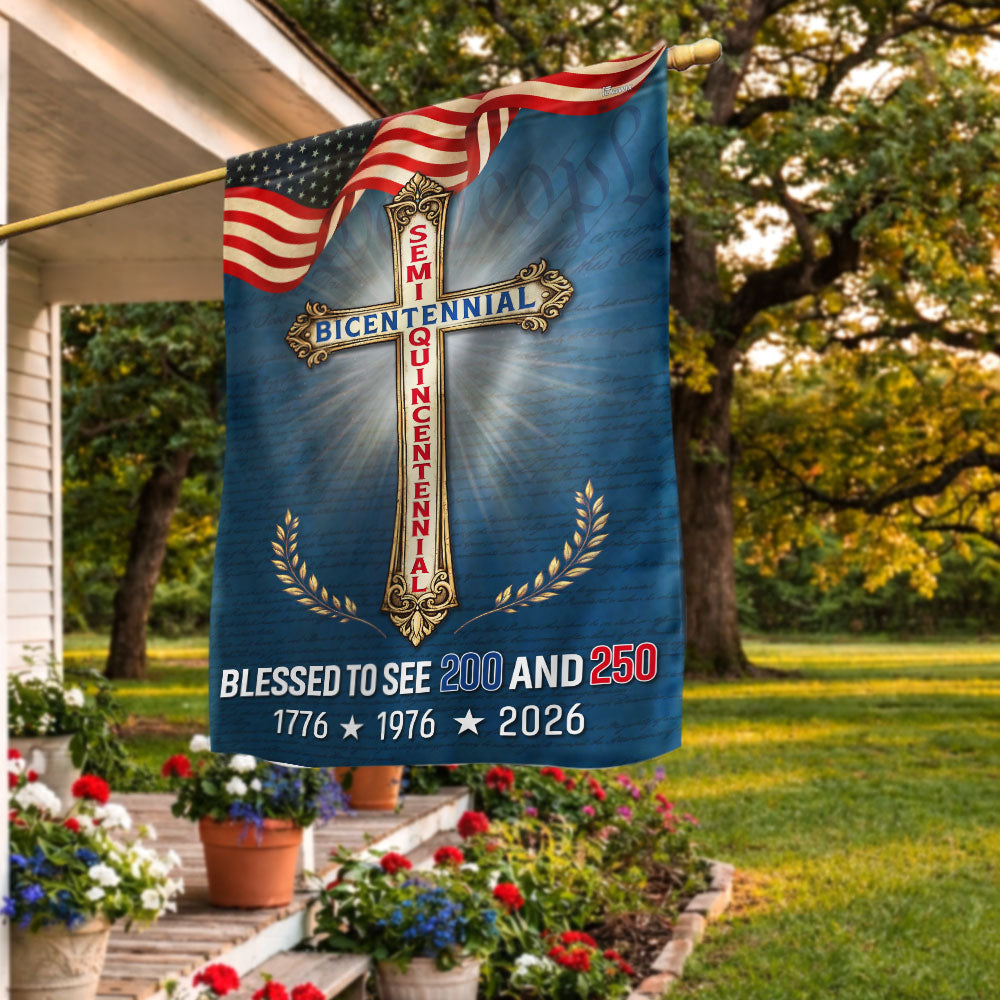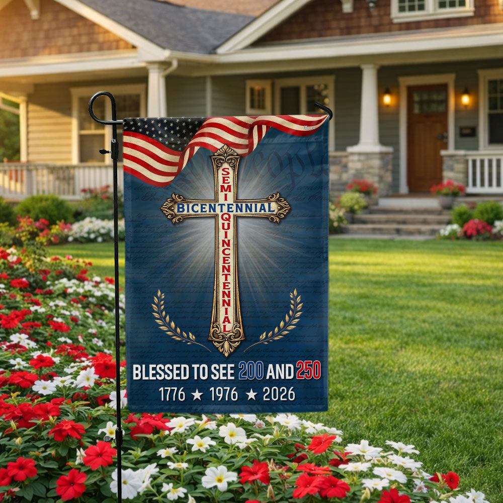 Blessed to see 200 and 250 Christian Garden Flag, Bicentennial Semiquincentennial Patriotic Flag Decor