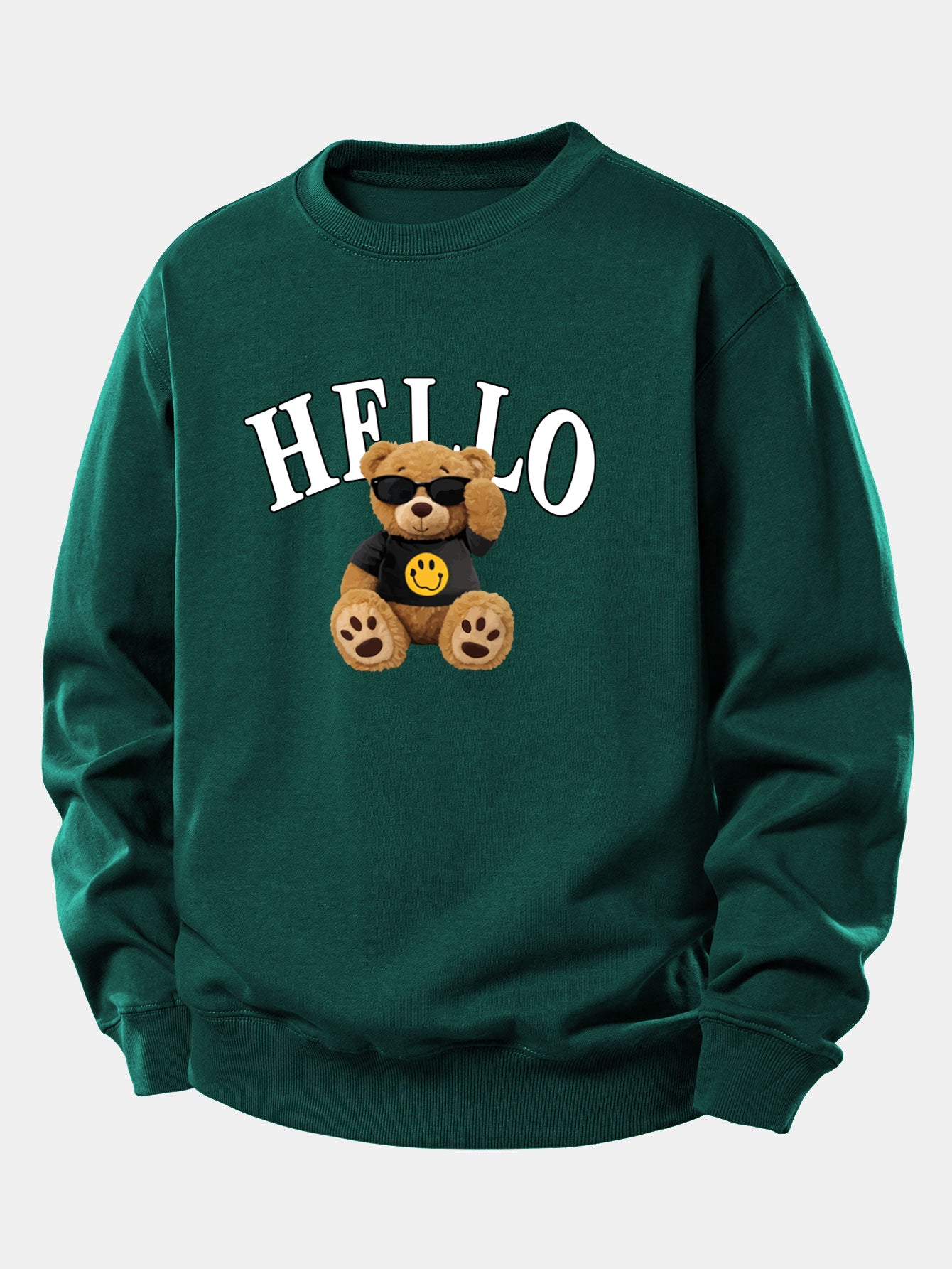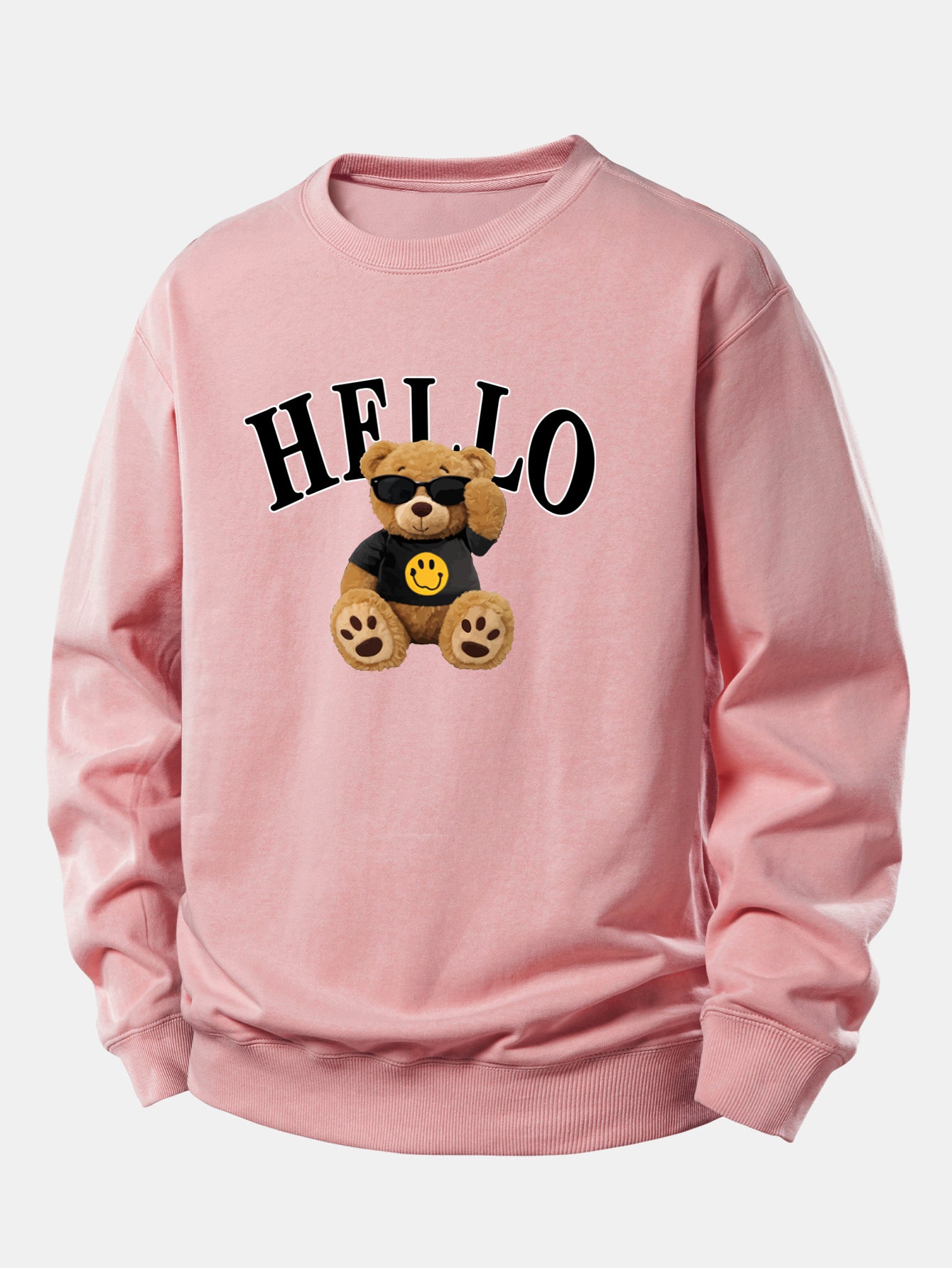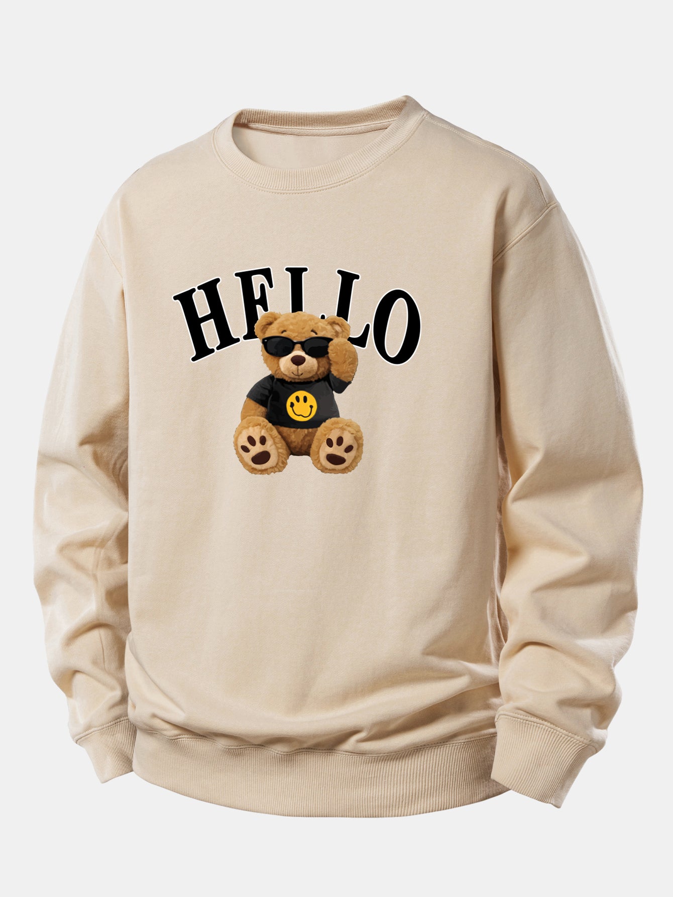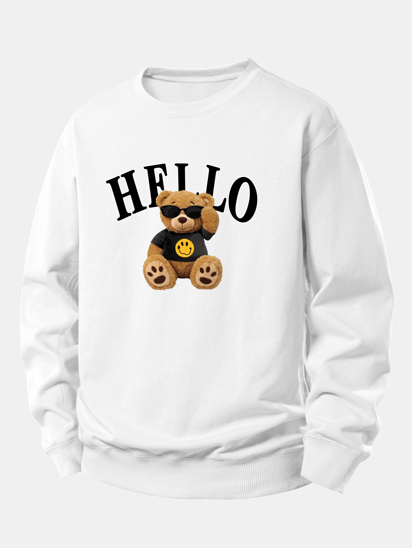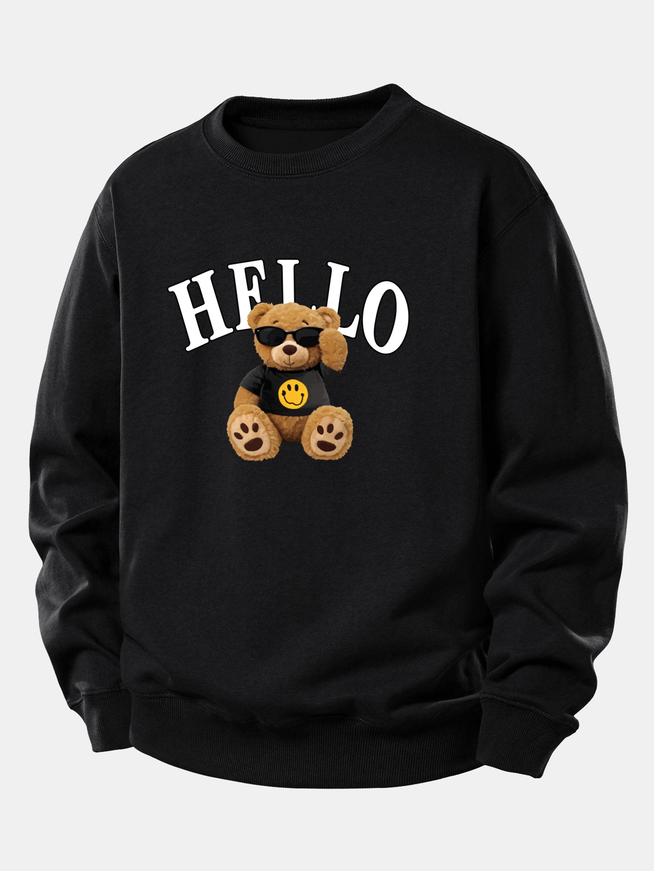 Featuring a cheerful bear wearing sunglasses and a friendly ''Hello'' graphic, this sweatshirt blends comfort with personality. Perfect for casual outings, cozy days at home, or layering during cooler weather.