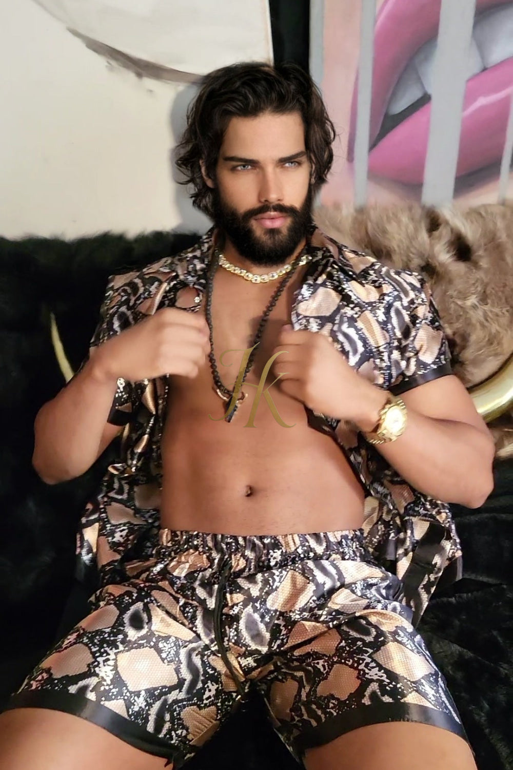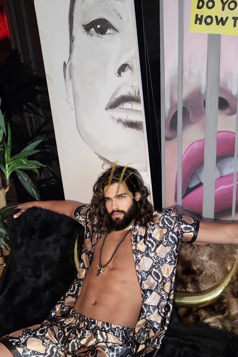 Elevate your wardrobe with our Men's Silk Set - Le Barroco Model - Baroque Print. Made entirely of silk, this two-piece set is soft, skin-friendly, and has a refined look full of class and style. The Le Barroco baroque print adds a touch of color and vibrancy to your everyday looks, making it perfect for the summer season. This set is an ideal gift for couples, making it perfect for anniversaries, Christmas, or any special occasion. All our products have their origin in Spain, betting on the quality of our factories and labor. In this way, it is also easier to monitor the process to obtain impeccable results in each garment. In Kayib Shop, we work to offer you an alternative to conventional fashion, betting on originality and print for your favorite garments. Quality, resistant, and unique fabrics are the basis for any model in our catalog. Take a step further and elevate your looks to the next level, go out and go for something different!