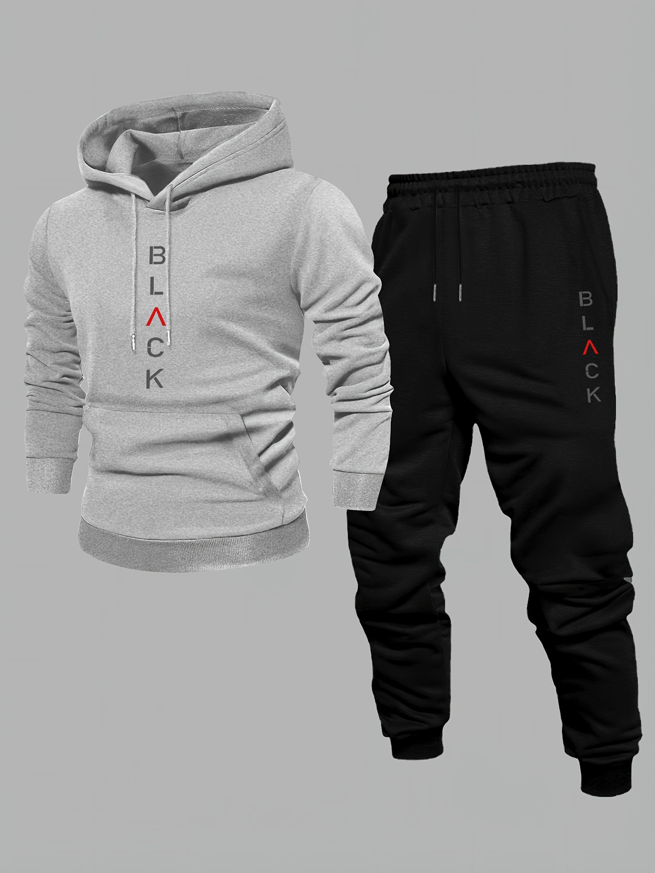 Men's Casual Color Matching Printed Hoodies Long Sleeved Sweatshirts & Sweatpants Two-Piece Set