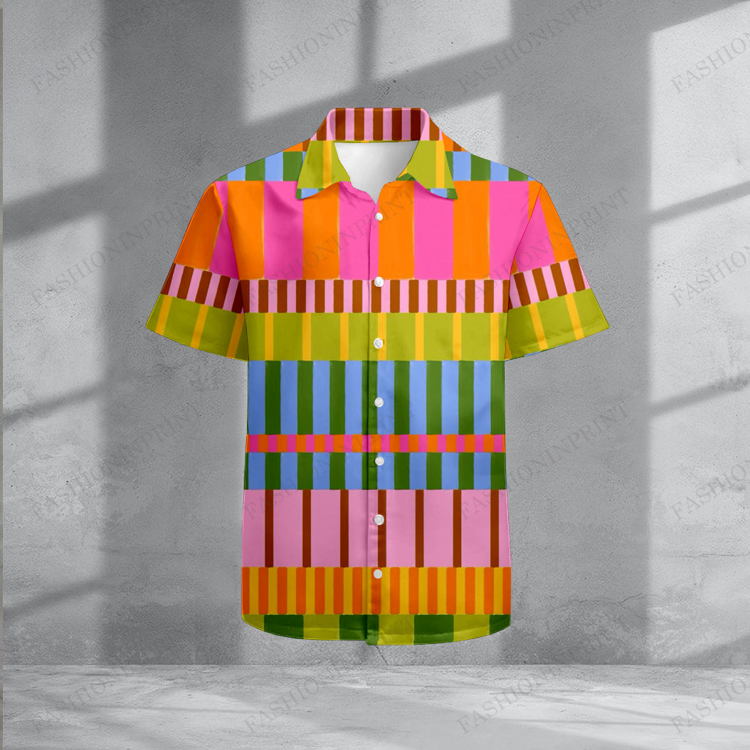 Men's Casual Colorful Striped Print Short-Sleeve Shirt