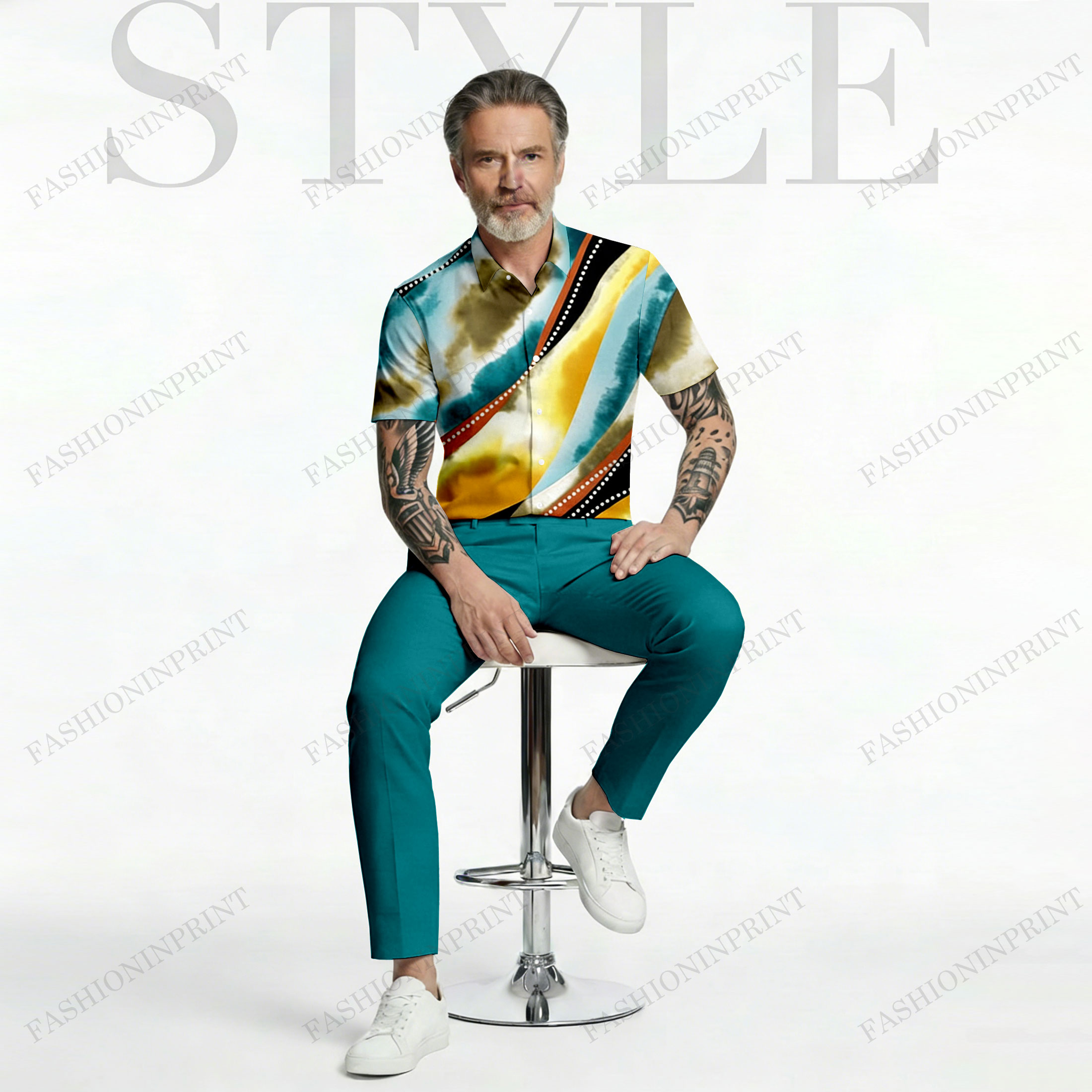 Men's Casual Dark Green Printed Shirt And Trousers Two-Piece Set