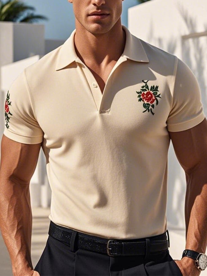 Men's Casual Embroidered Short Sleeve Polo Shirt