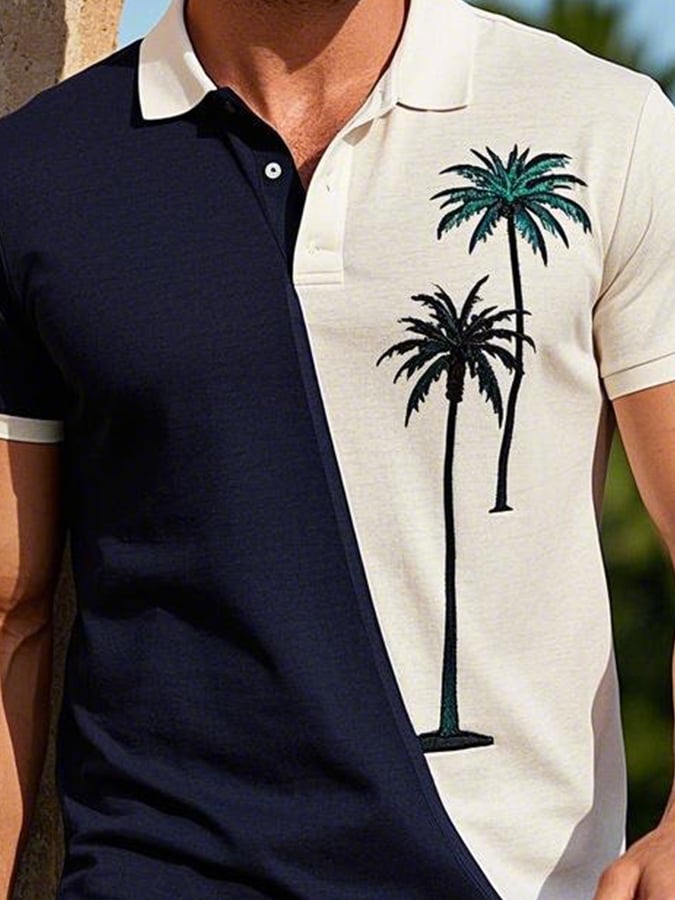 Men's Casual Palm Tree Embroidered Short-Sleeved Polo Shirt