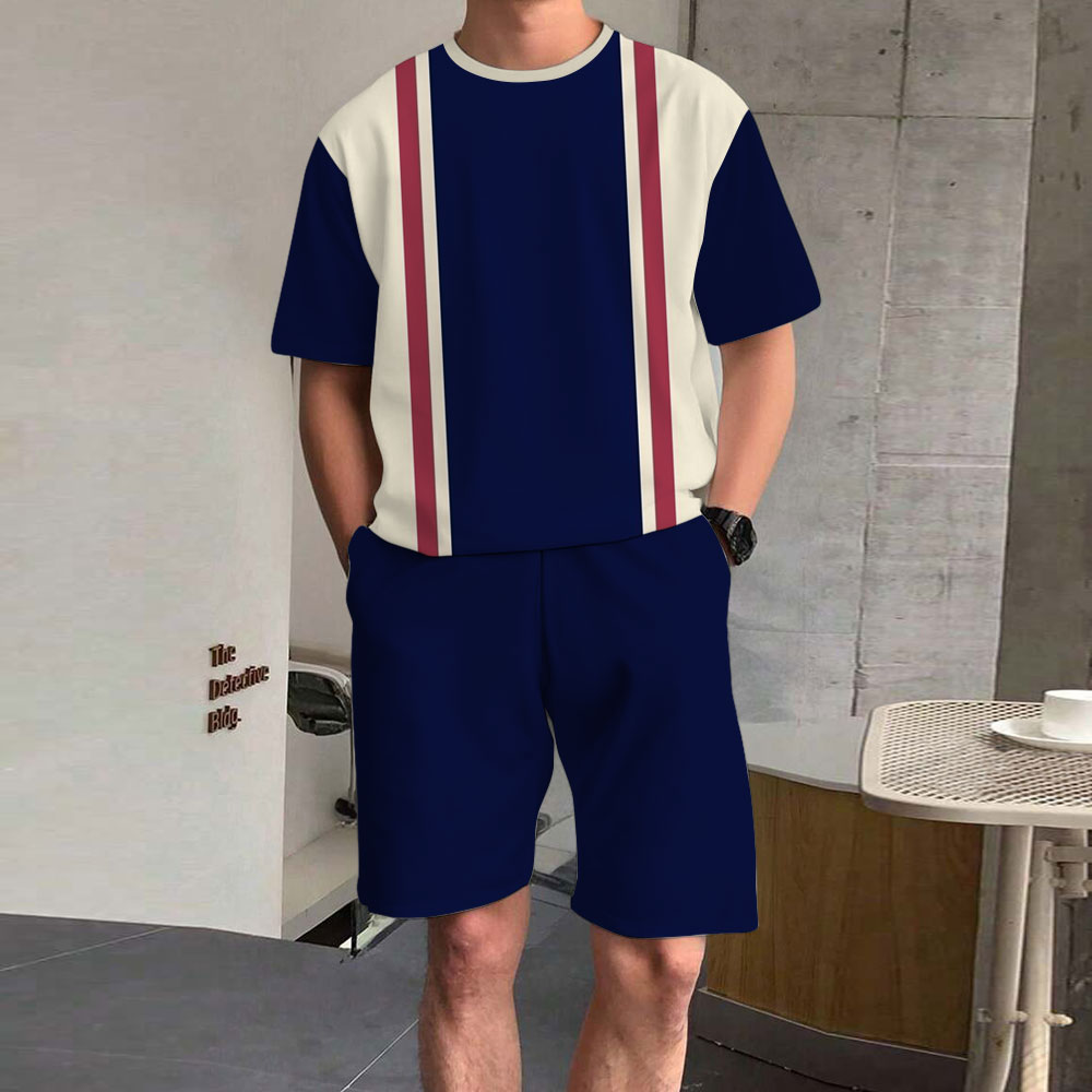 Men's Casual Round-Neck Geometric Printed Short-Sleeved Fashion Loose Two-Piece Set