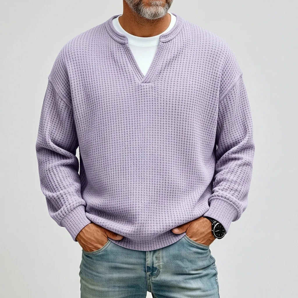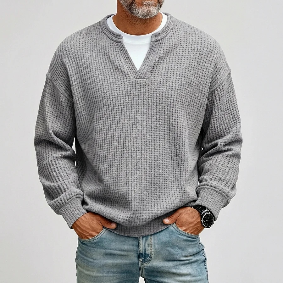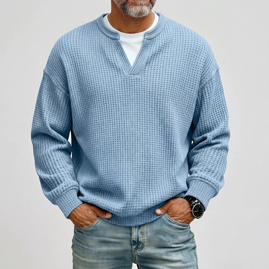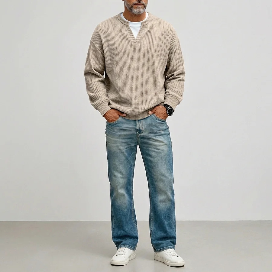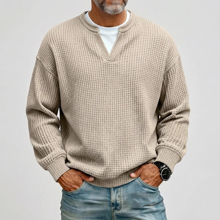 Men's Casual Waffle Notched Collar Long Sleeve T-Shirts