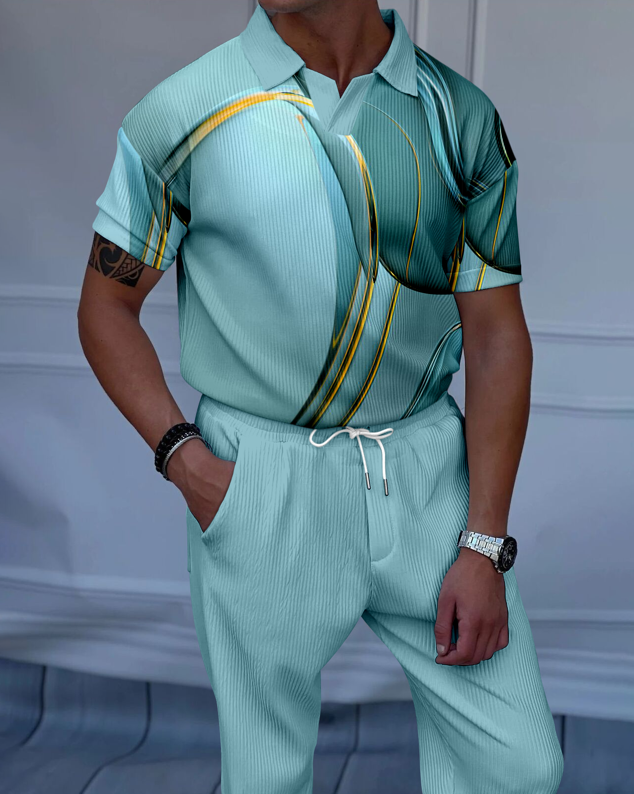 Men's Luxury Casual Textured Polo Short Sleeve Suit - 024
