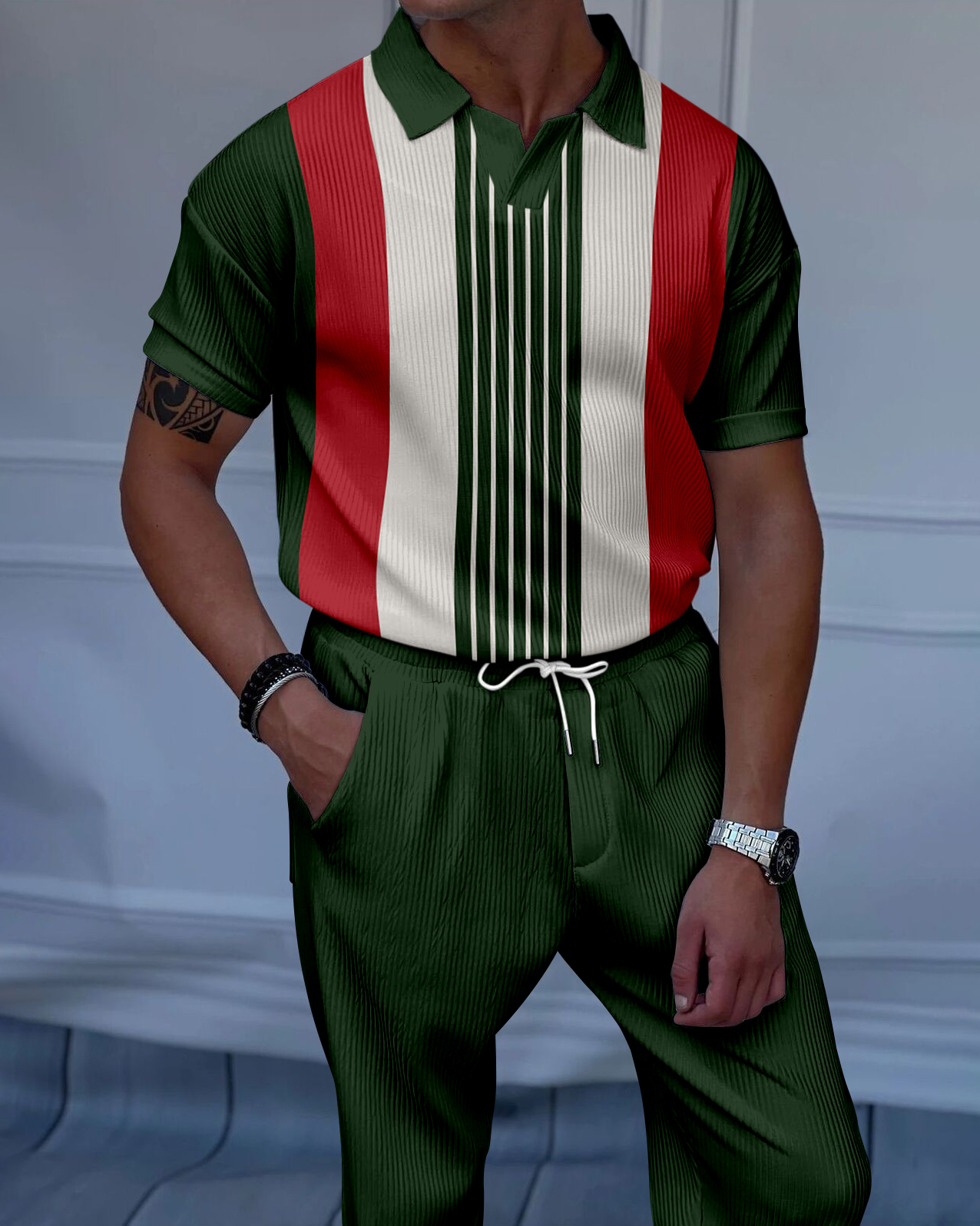 Men's Luxury Casual Textured Polo Short Sleeve Suit - 057