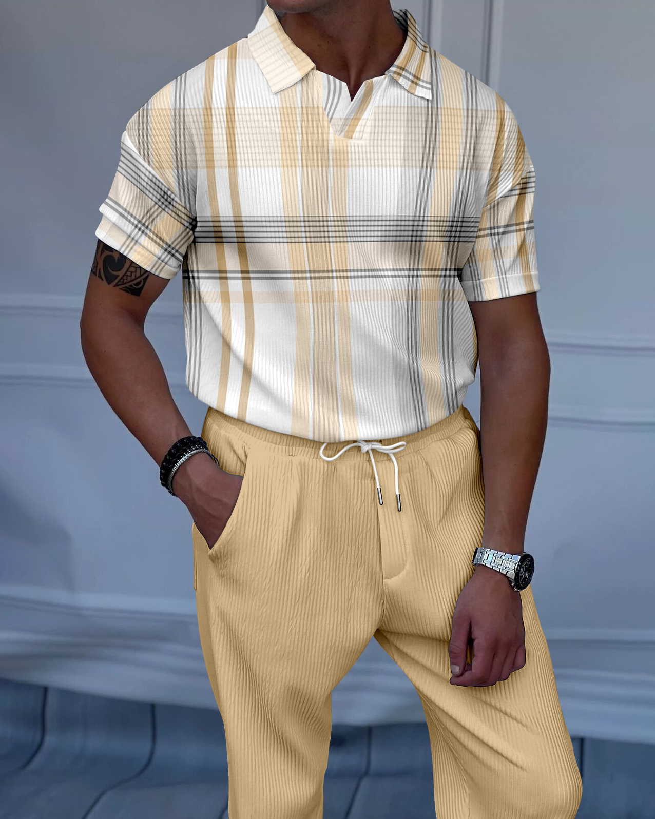 Men's Luxury Casual Textured Polo Short Sleeve Suit - 064