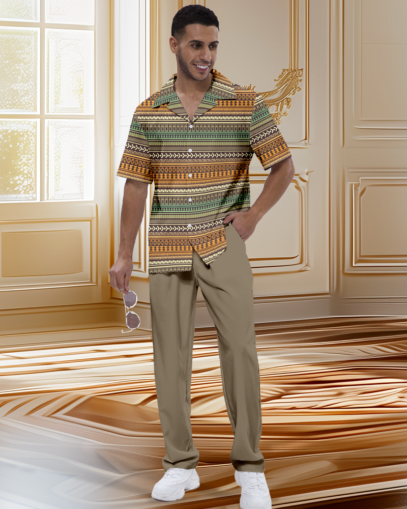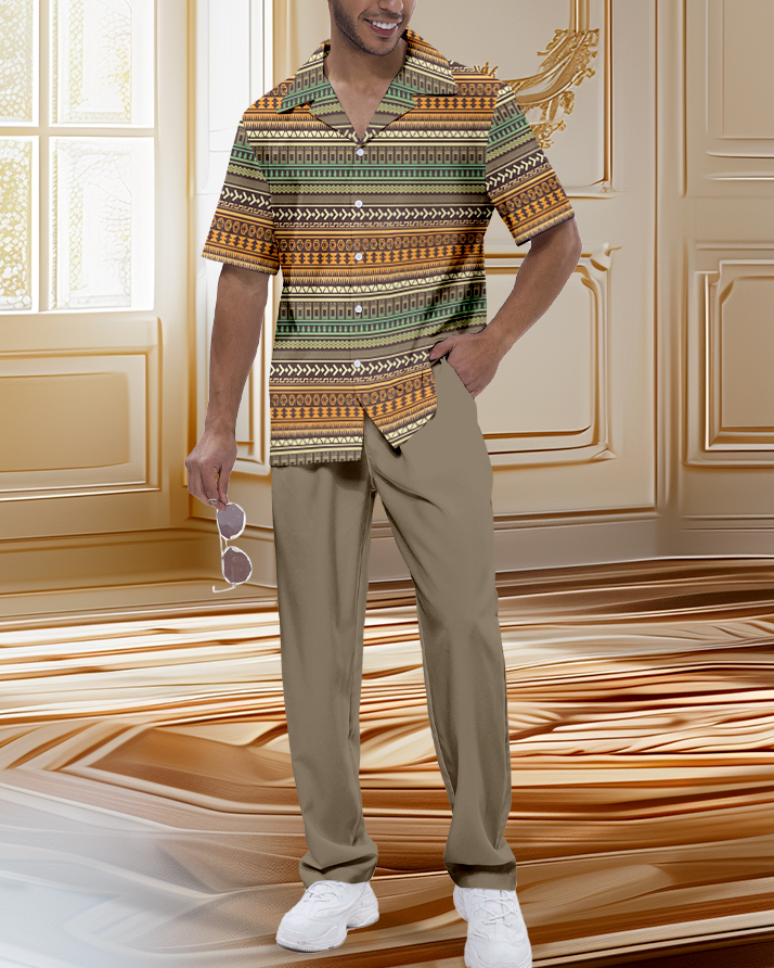 Men's Retro Luxury Short Sleeve Shirt Walking Suit 1116