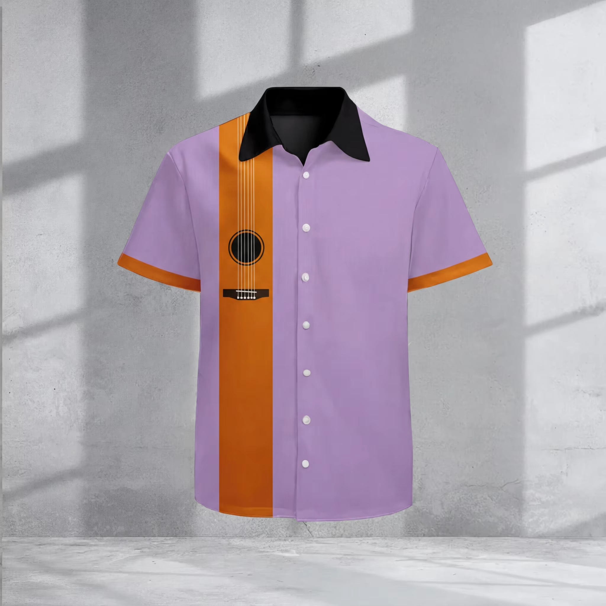 Men's Retro Purple And Orange Geometric Print Short-Sleeved Shirt