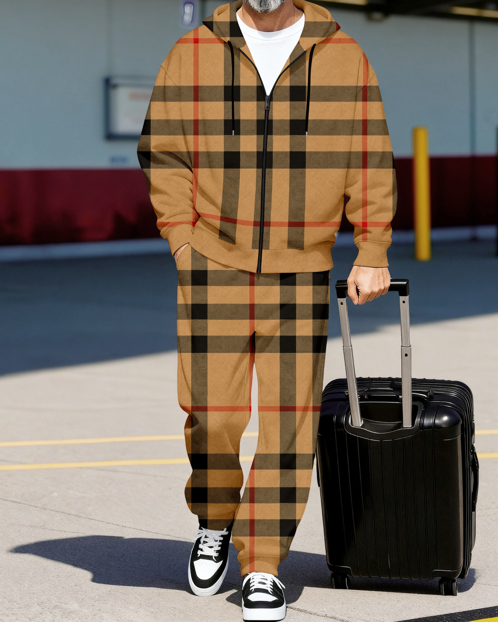 Men's Retro Luxury Thickened Fleece Colorblock Jacket Sports Hoodie Set 06