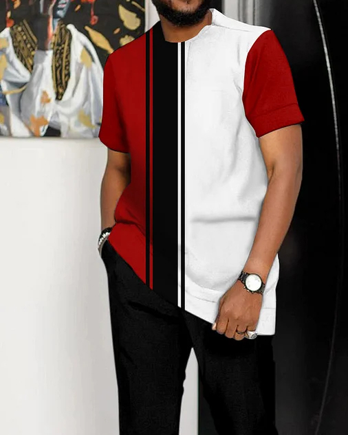 Suitmens Men's Colorblock Print Short Sleeve Sports Walking Suit -305