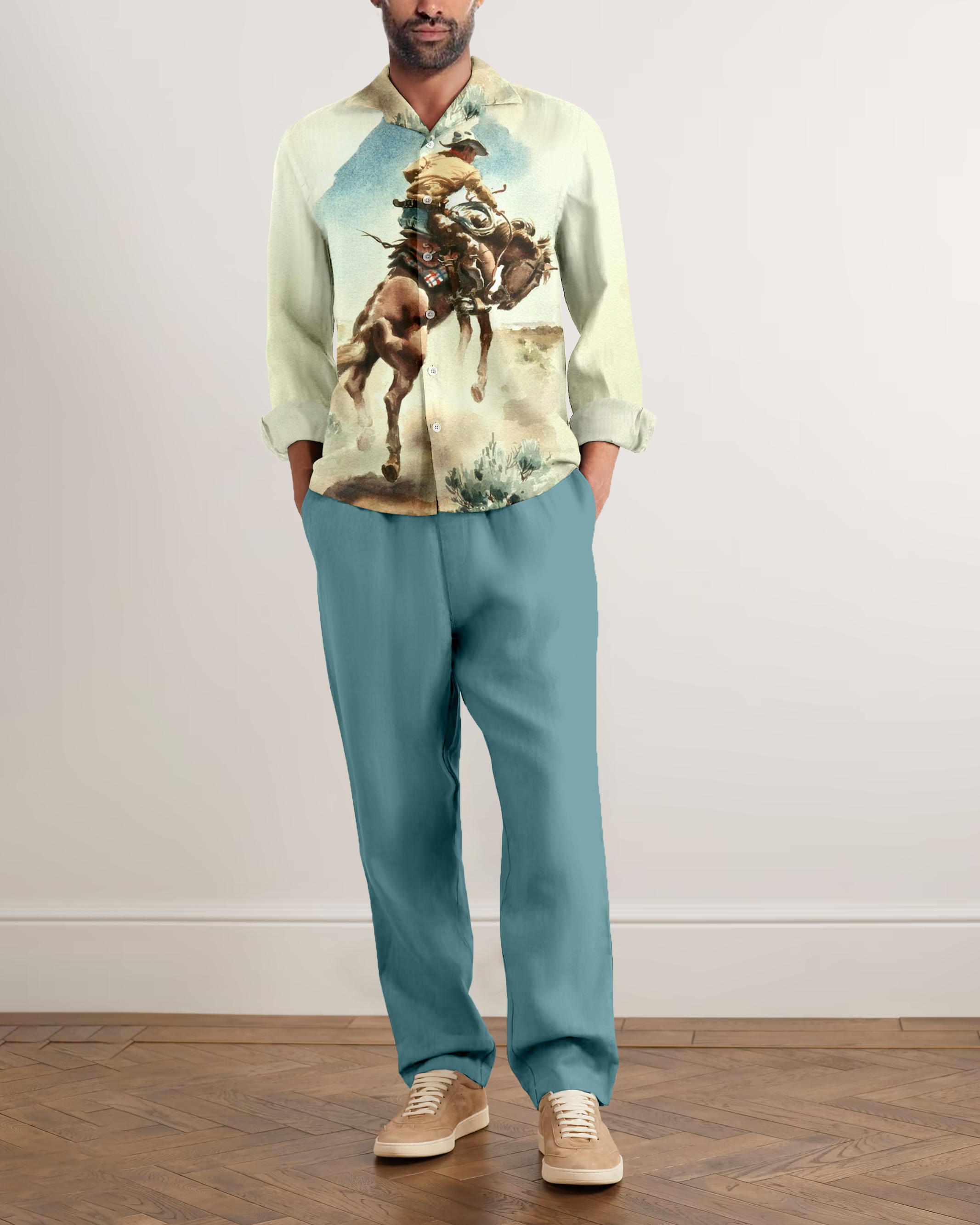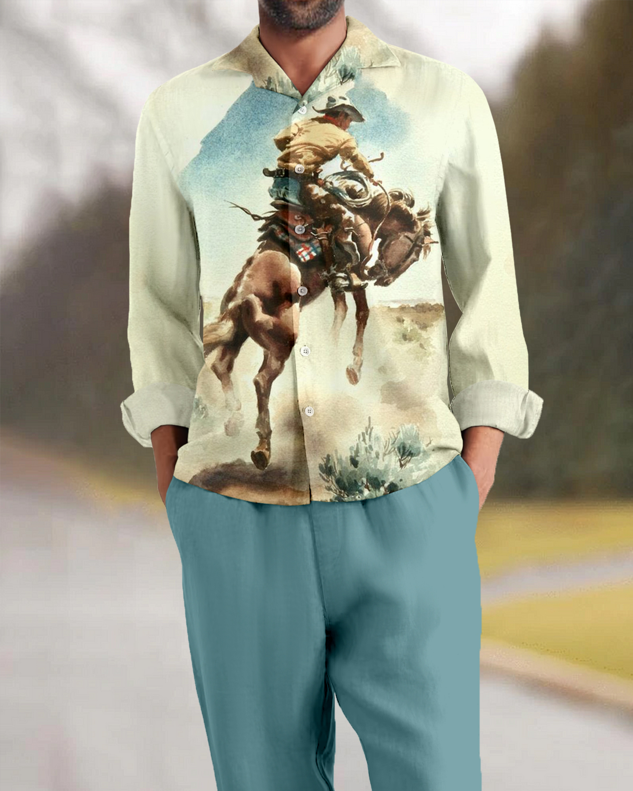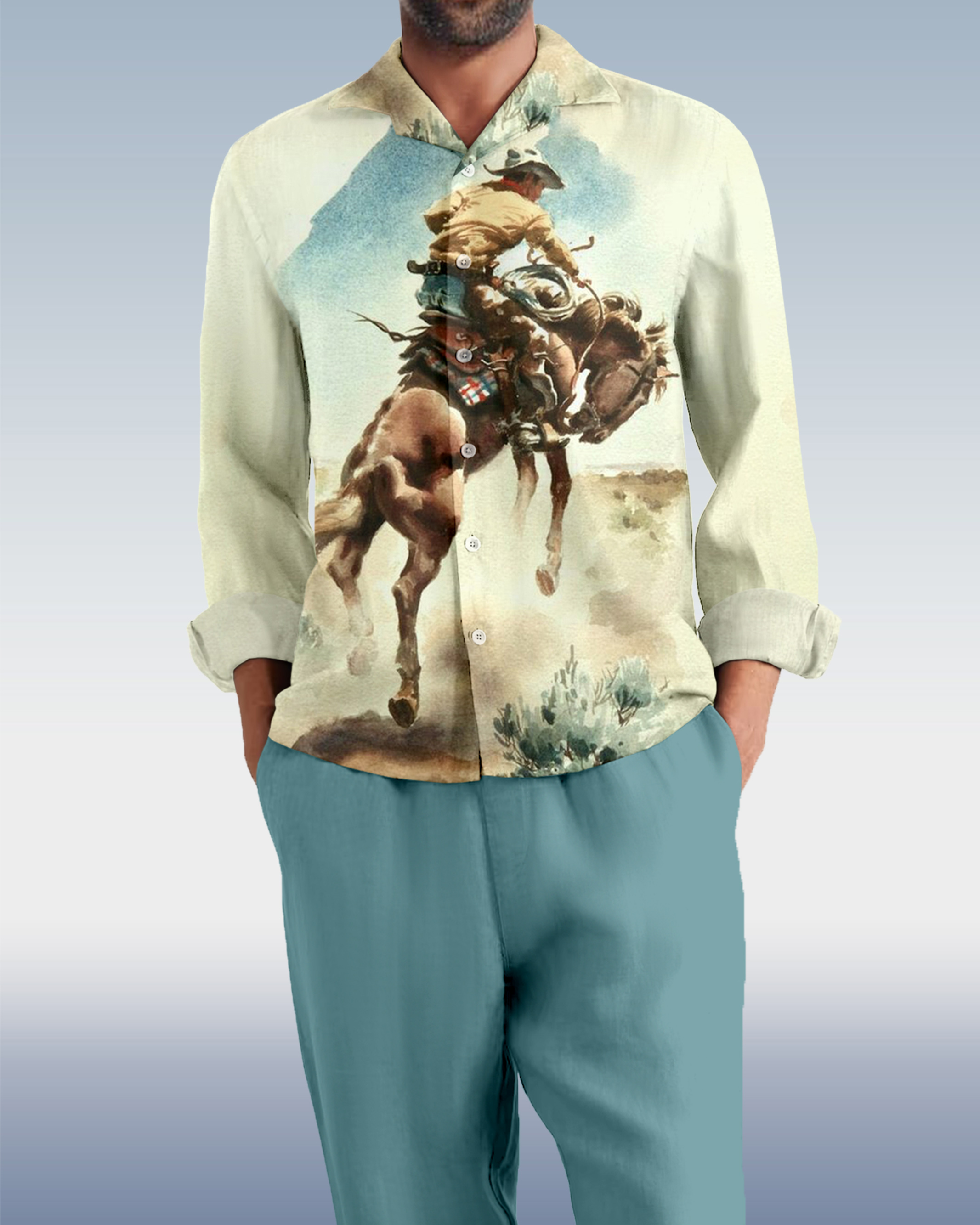 Suitmens Men's Nostalgic Equestrian Pattern Long Sleeve Suit-0010