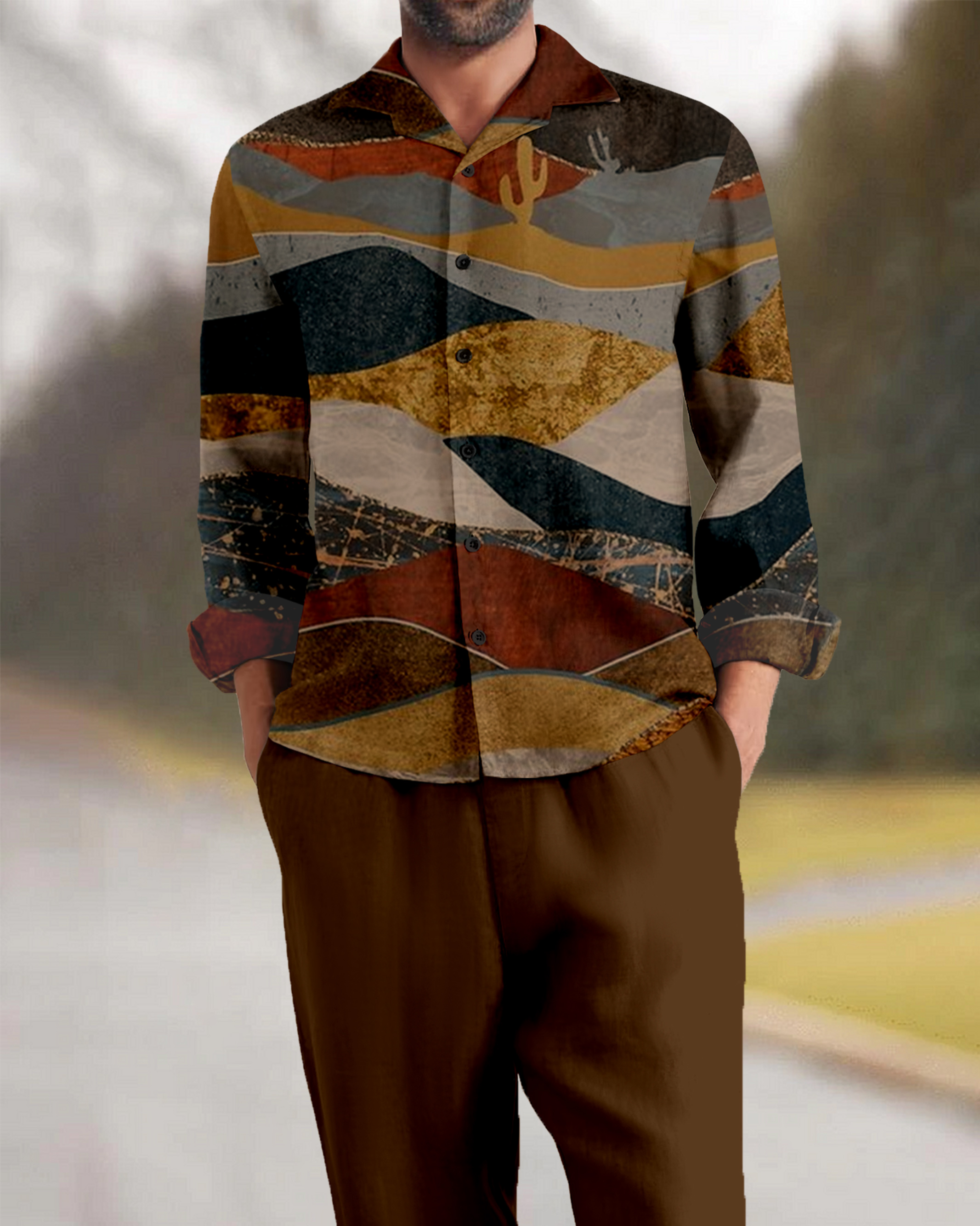 Suitmens Men's Retro Mountain Long Sleeve Walking Suits-0132