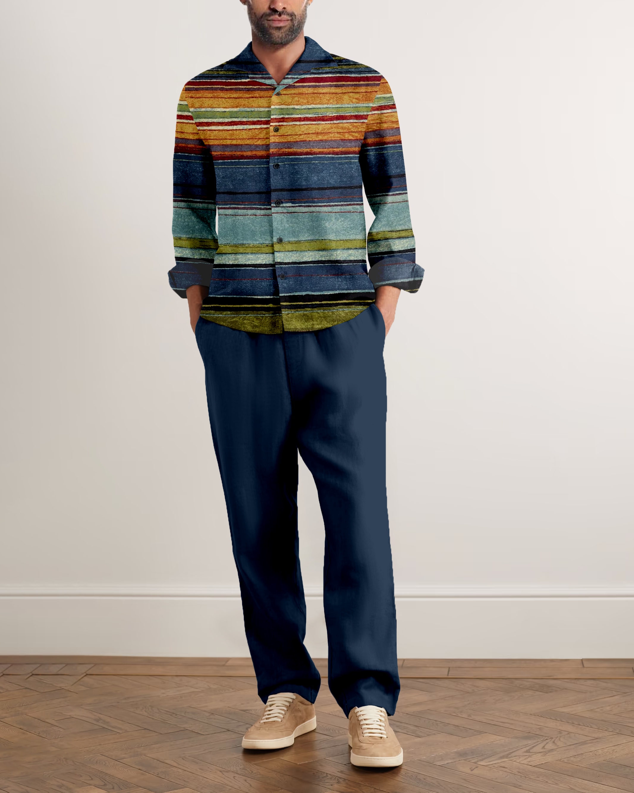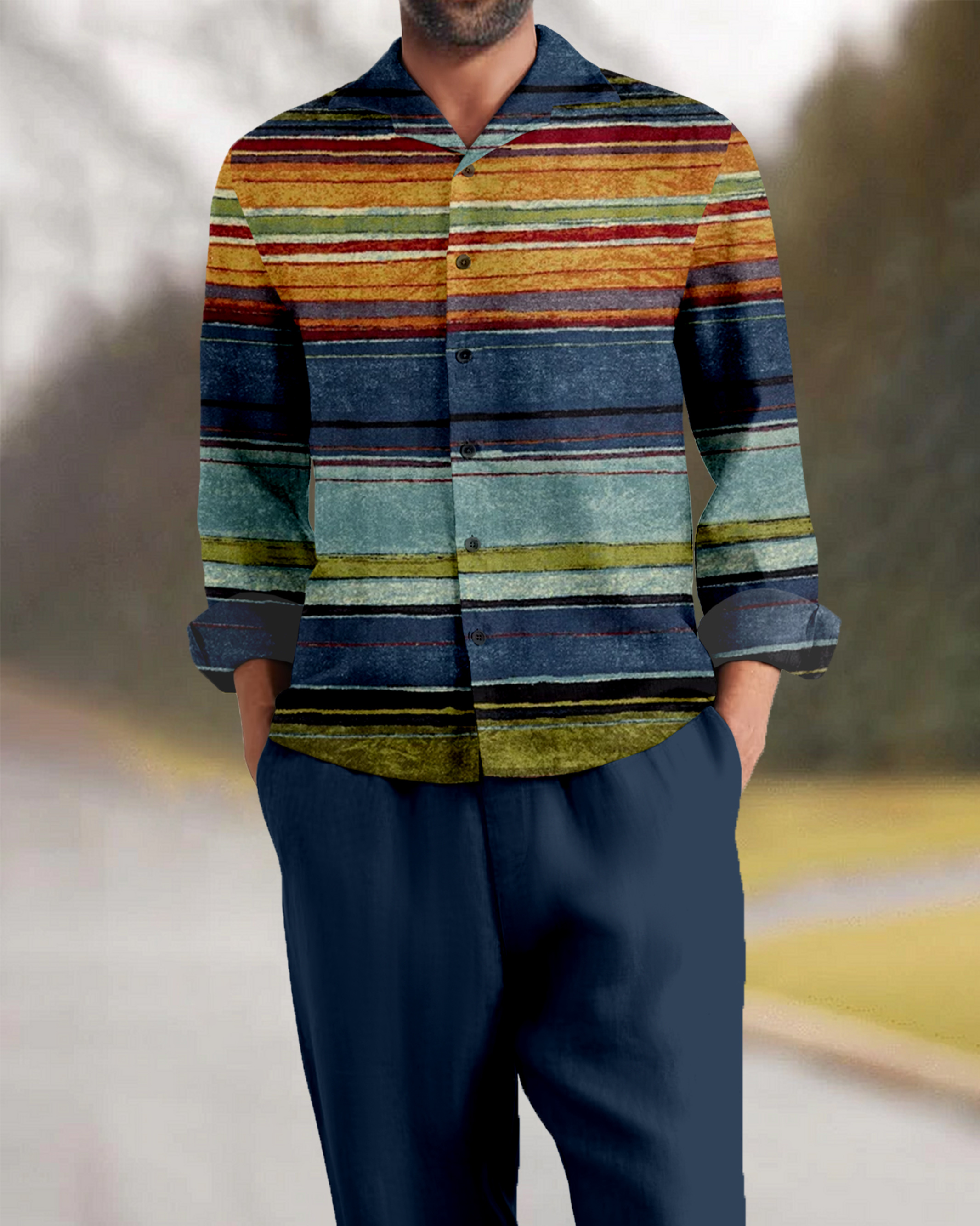 Suitmens Men's Southwestern Sripe Long Sleeve Walking Suits-0039