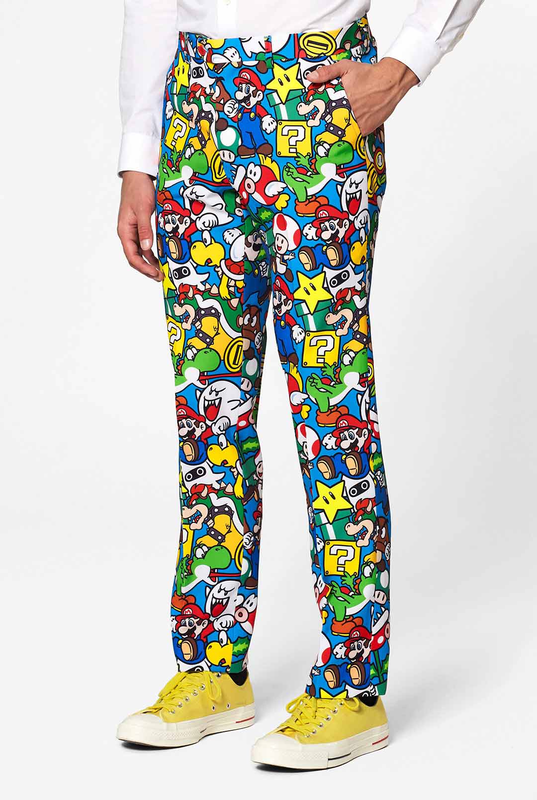 Do your bros say: “Sorry, but your sense of fashion is in another castle”? Well, let’s face it: maybe you just need to power-up your wardrobe with this Super Mario™ suit. Covered in an all-over print with all iconic characters from the Mushroom Kingdom, you’ll win the outfit game for sure.