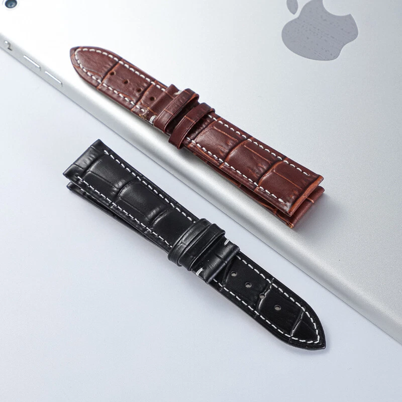 Engineered for daily wear, the strap features reinforced stitching, a smooth or matte finish, and a polished crocodile texture that delivers both comfort and style. The precision-folded edges not only enhance strength but also provide a sleek, polished look that resists fraying and cracking over time.