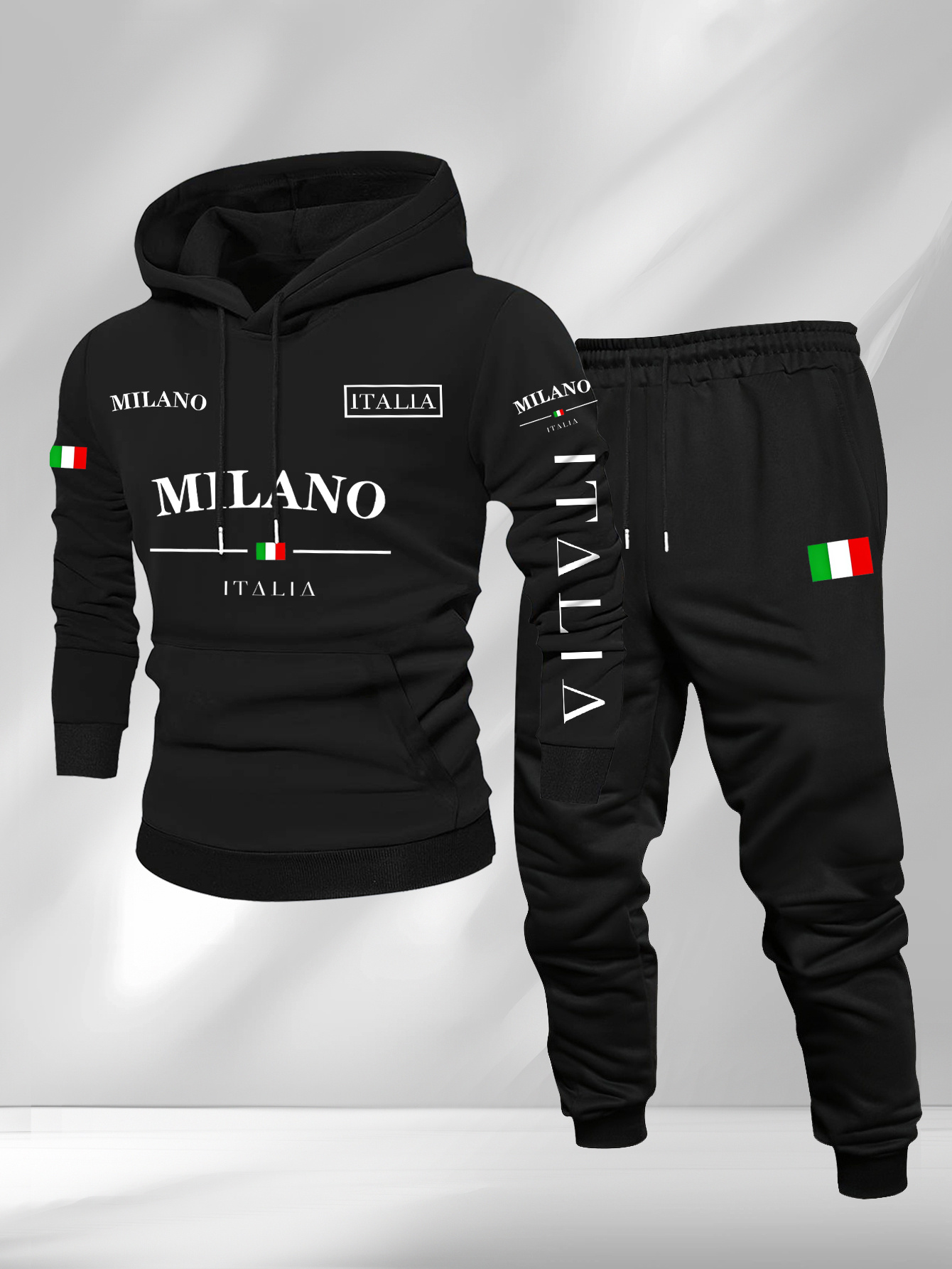 Men's Casual Color Matching Printed Hoodies Long Sleeved Sweatshirts & Sweatpants Two-Piece Set