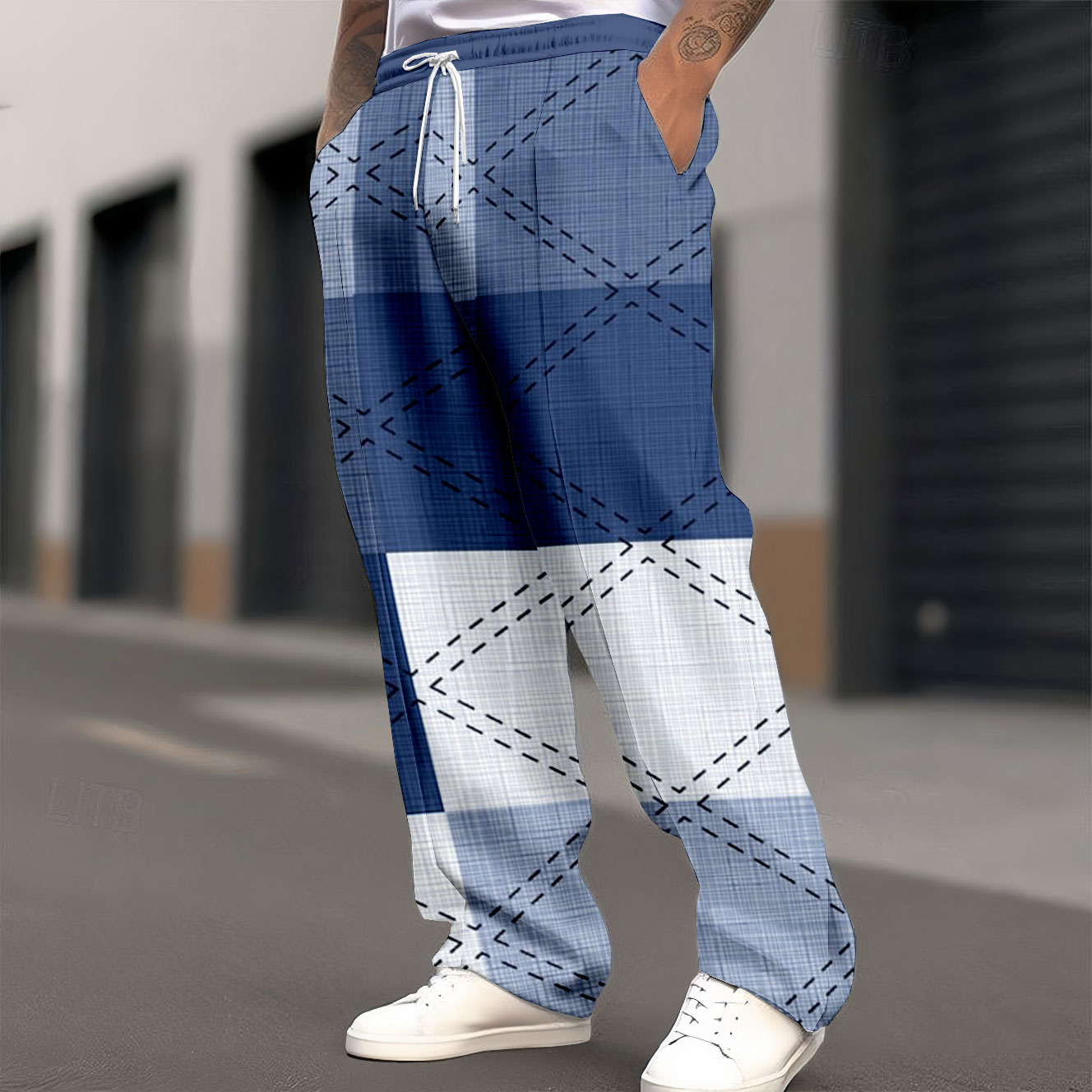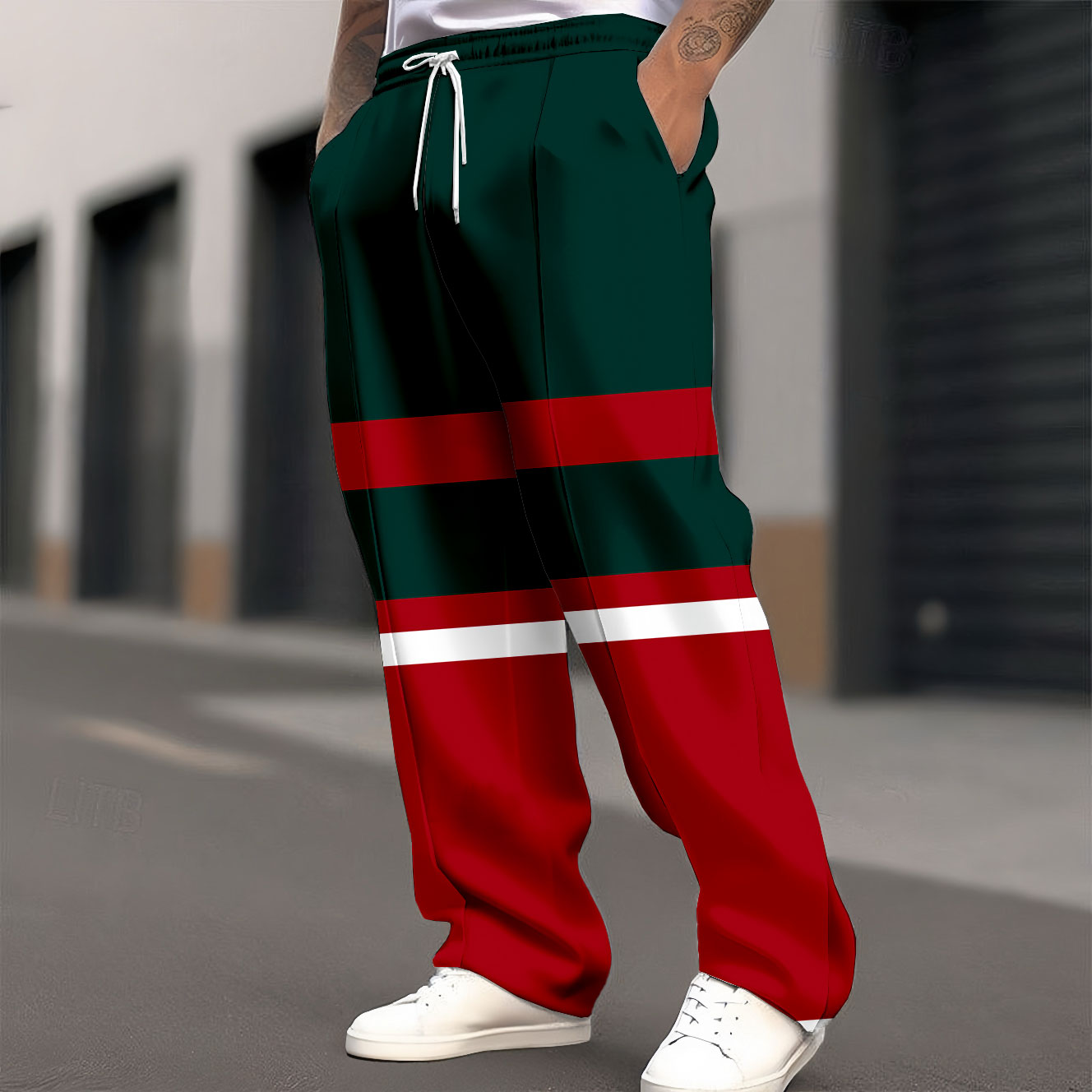 Men's Casual Maroon & White Color Matching Striped Printed Polo-Collar Zipper Long Sleeved Trousers Two-Piece Set