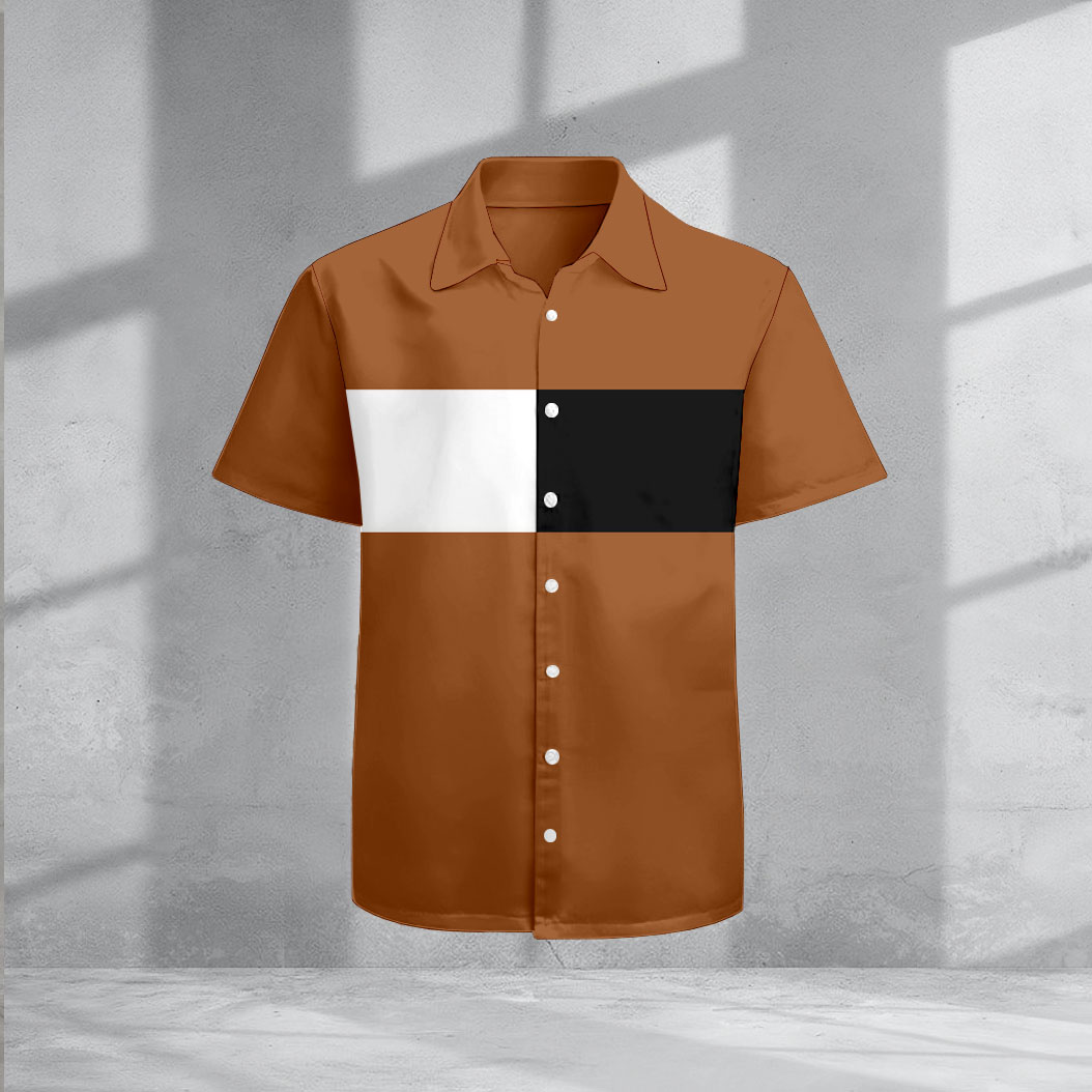 Men's Casual Lapel Coffee Color Matching Printed Short Sleeve Shirts