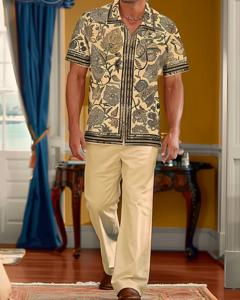 Men's Gorgeous Ethnic Floral Pattern Walking Suit 016