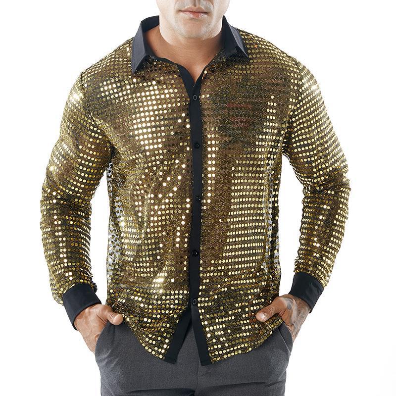 Men's Scale-Patterned 70S Disco Party Shirt