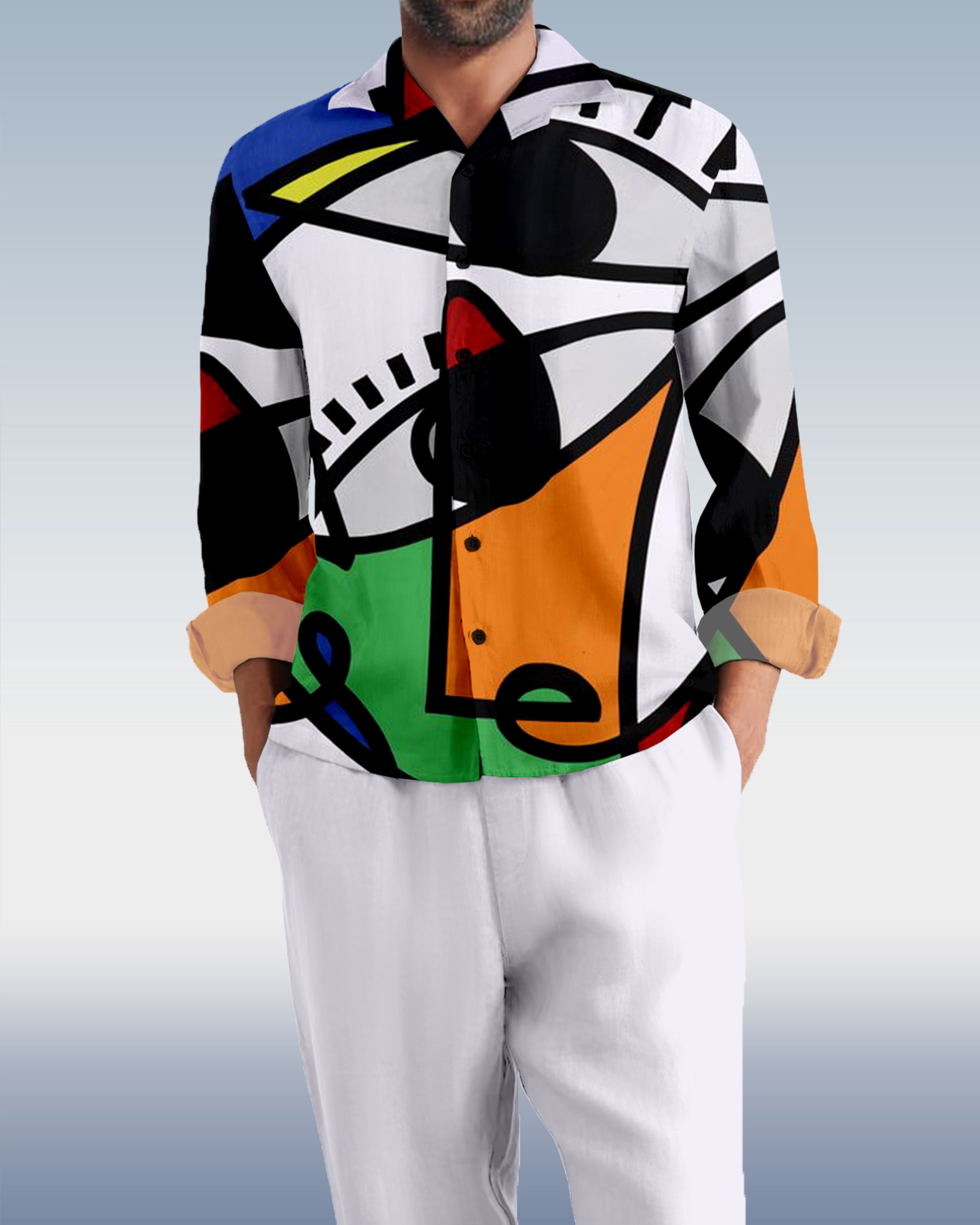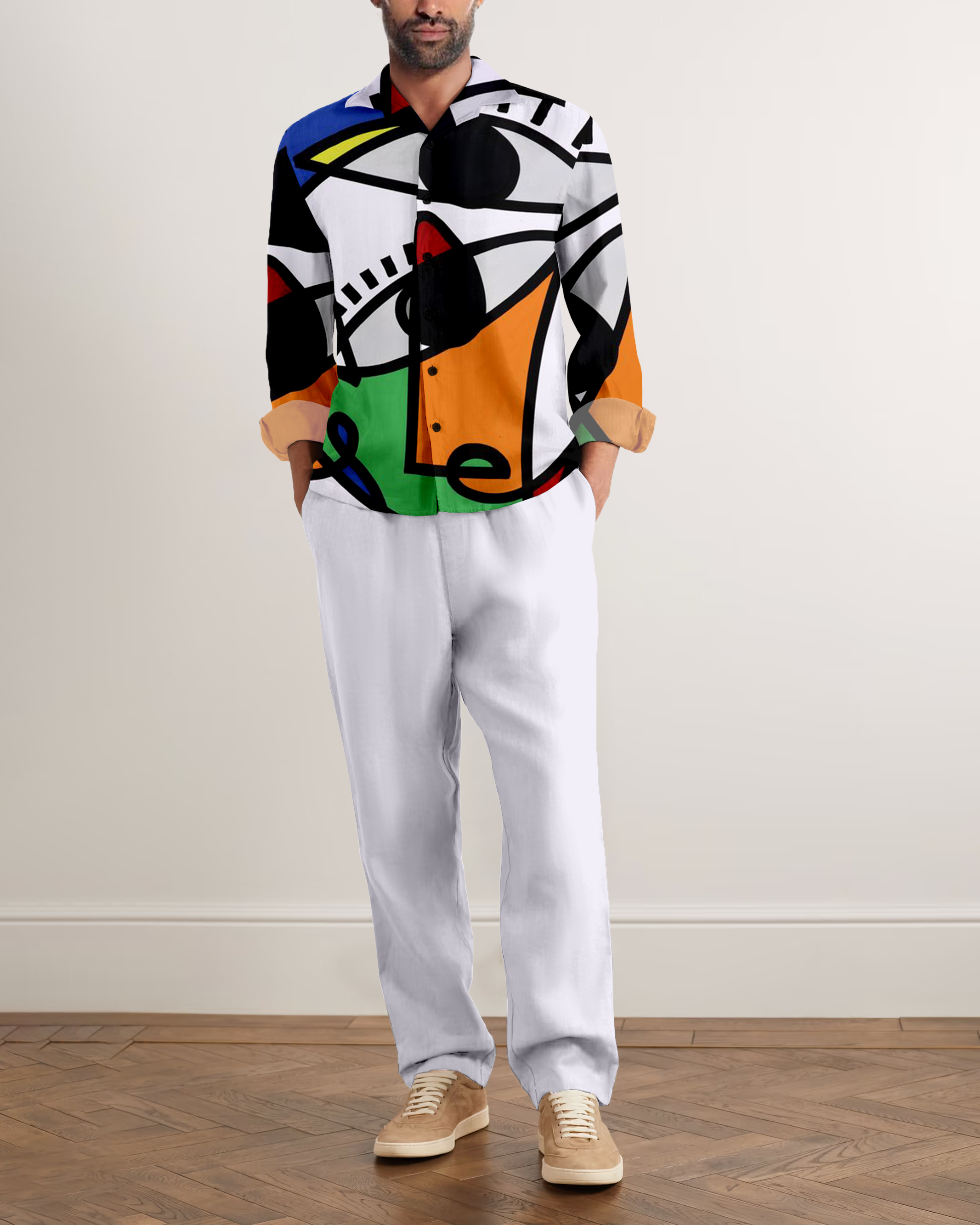 Suitmens Men's Abstract Art Long Sleeve Walking Suits-0052