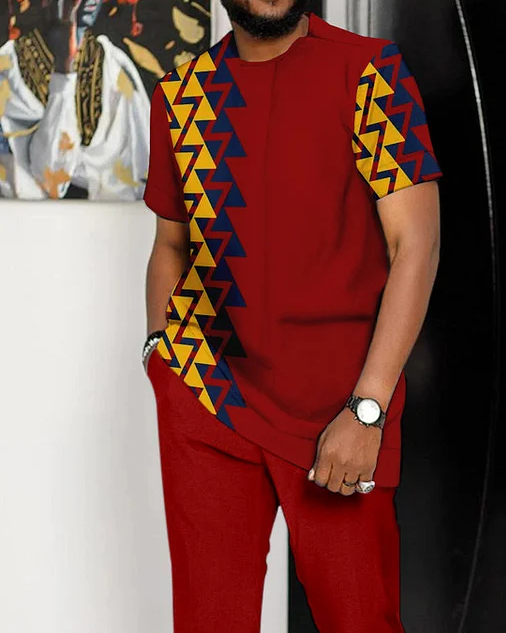 Suitmens Men's Colorblock Print Short Sleeve Sports Walking Suit -304