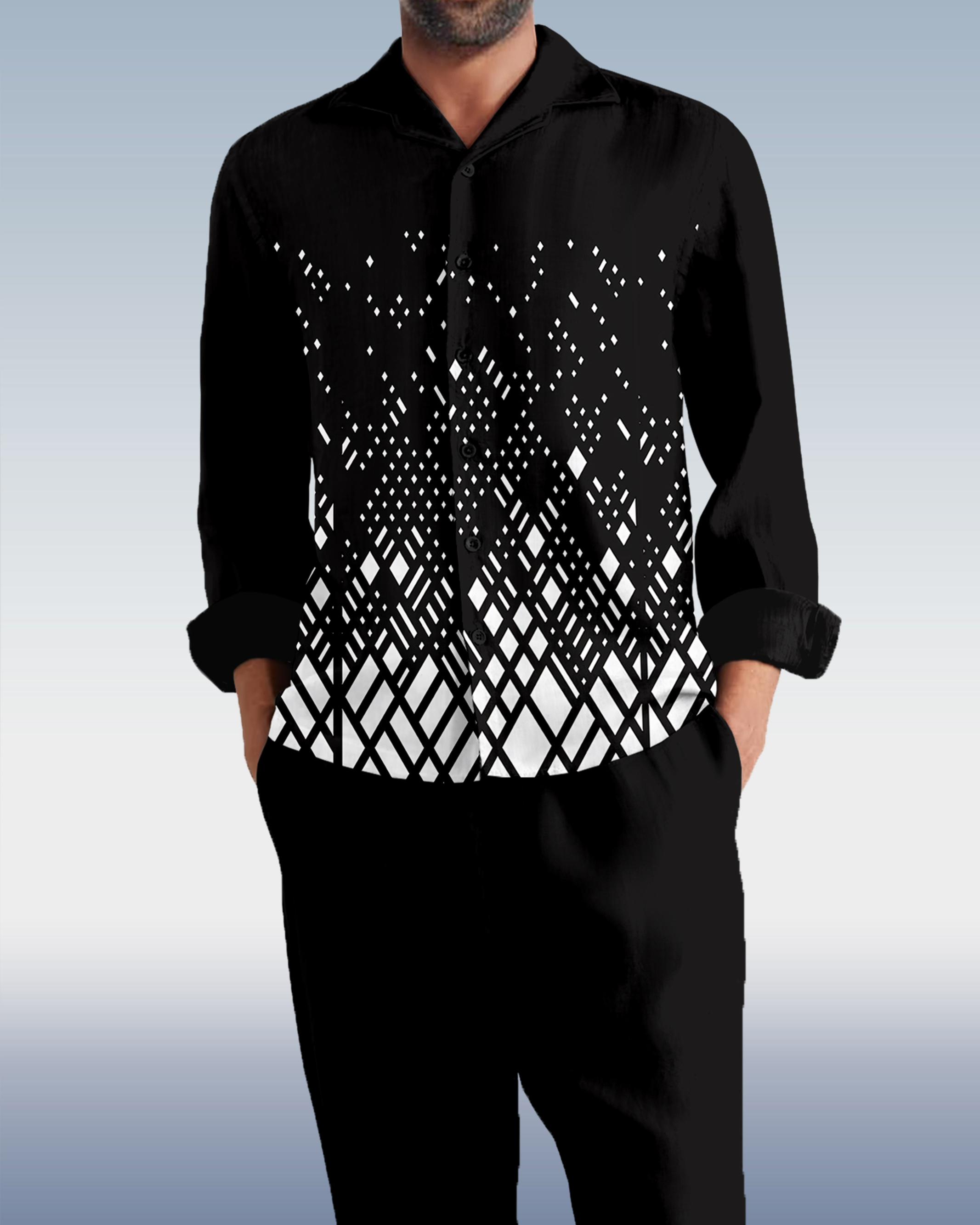 Suitmens Men's Gradient Geometry Long Sleeve Walking Suits-0134