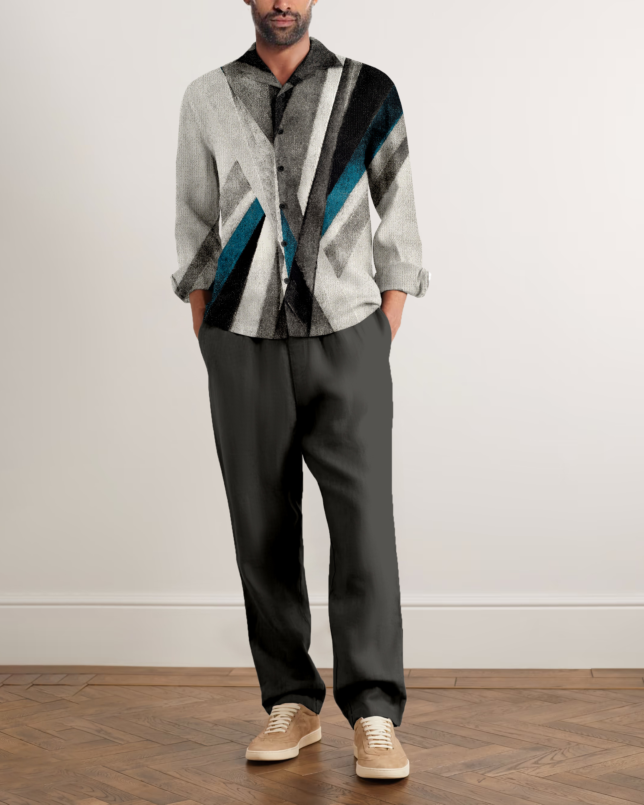 Suitmens Men's Retro Geometry Long Sleeve Walking Suits-0137