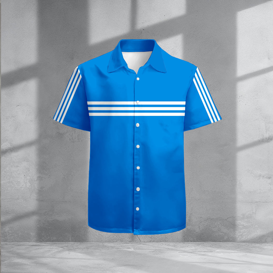 Men's Casual Blue & White Color Matching Striped Print Short-Sleeve Shirt