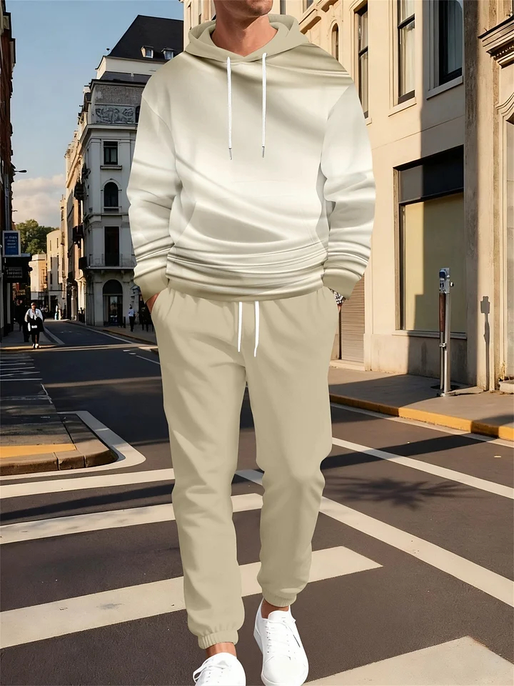 Men's Casual Color Matching Gradient Printed Hoodies Long Sleeved Trousers Khaki Two-Piece Set