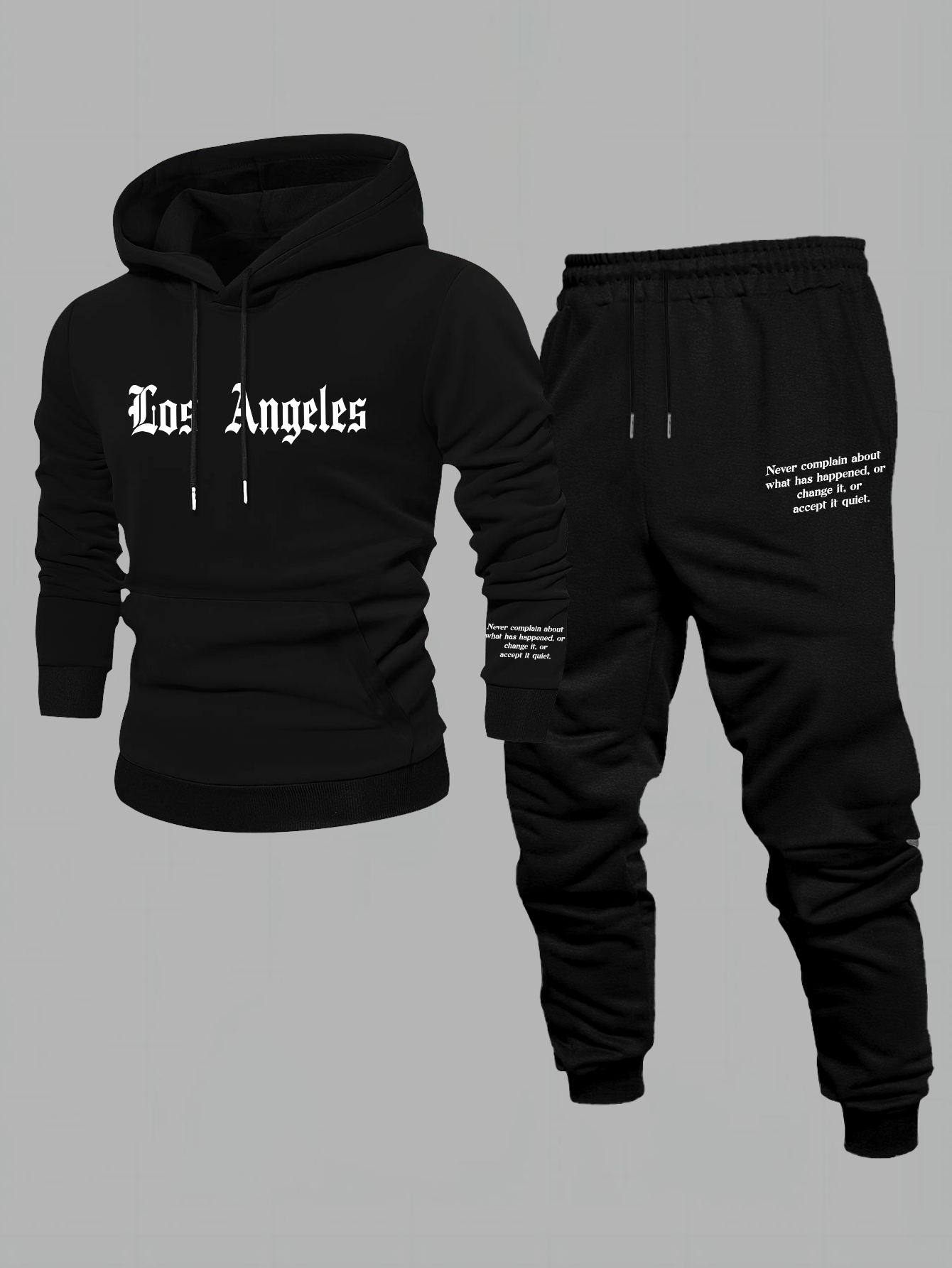 Men's Casual Color Matching Hoodies Long Sleeved Sweatshirts & Sweatpants Two-Piece Set