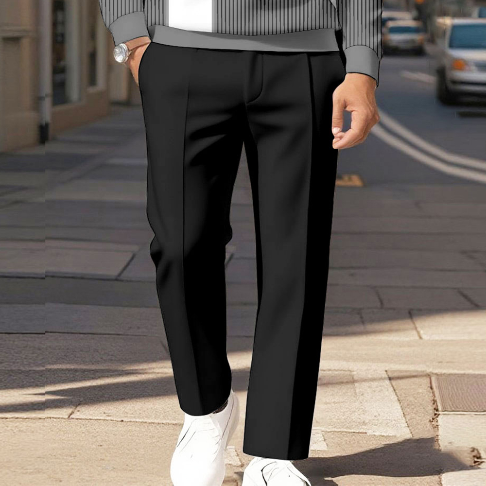 Men's Casual Gradient Striped Black Color Matching Printed Polo-Collar Zipper Long Sleeved Trousers Two-Piece Set