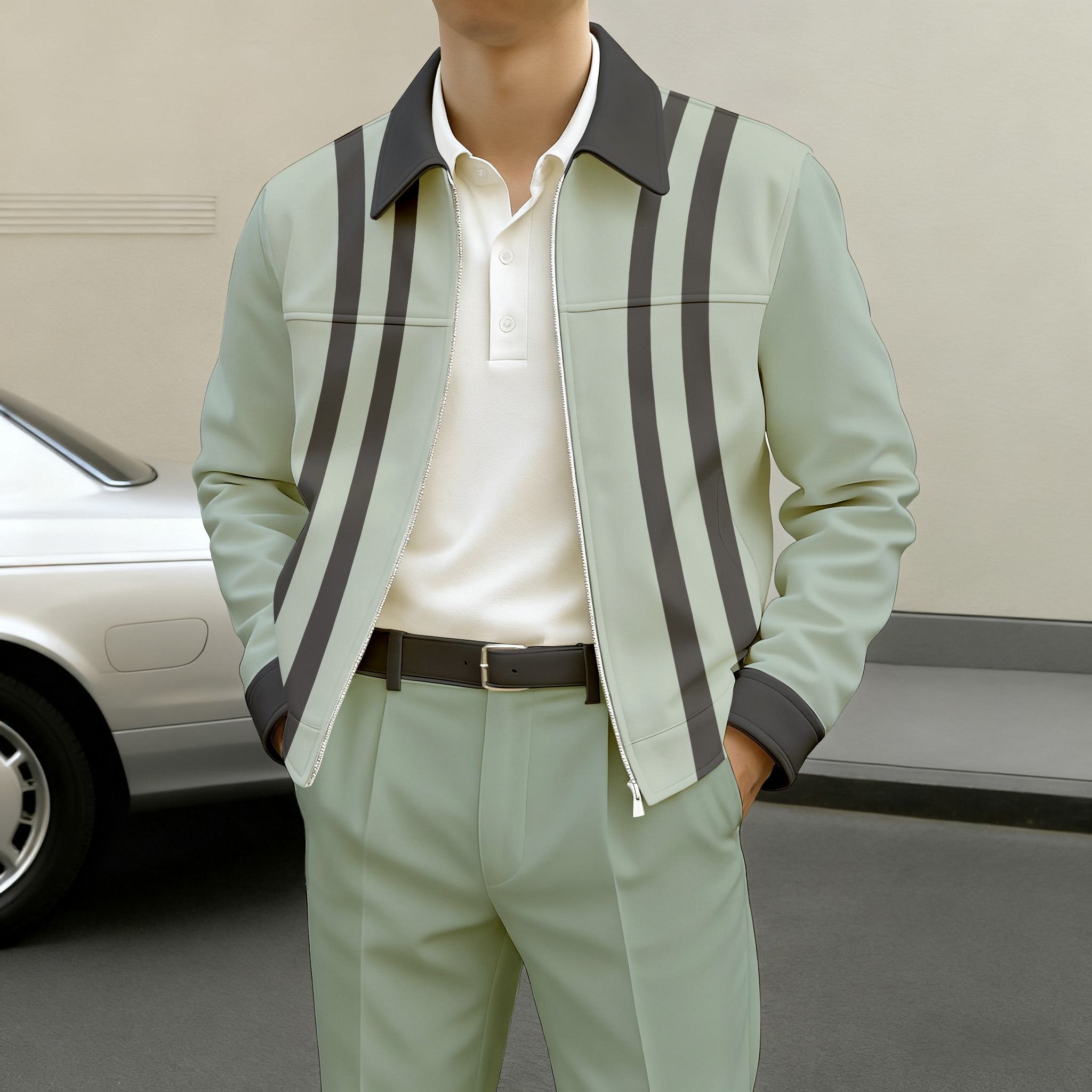 Men's Casual Color Matching Printed Zipper Long Sleeved Jacket
