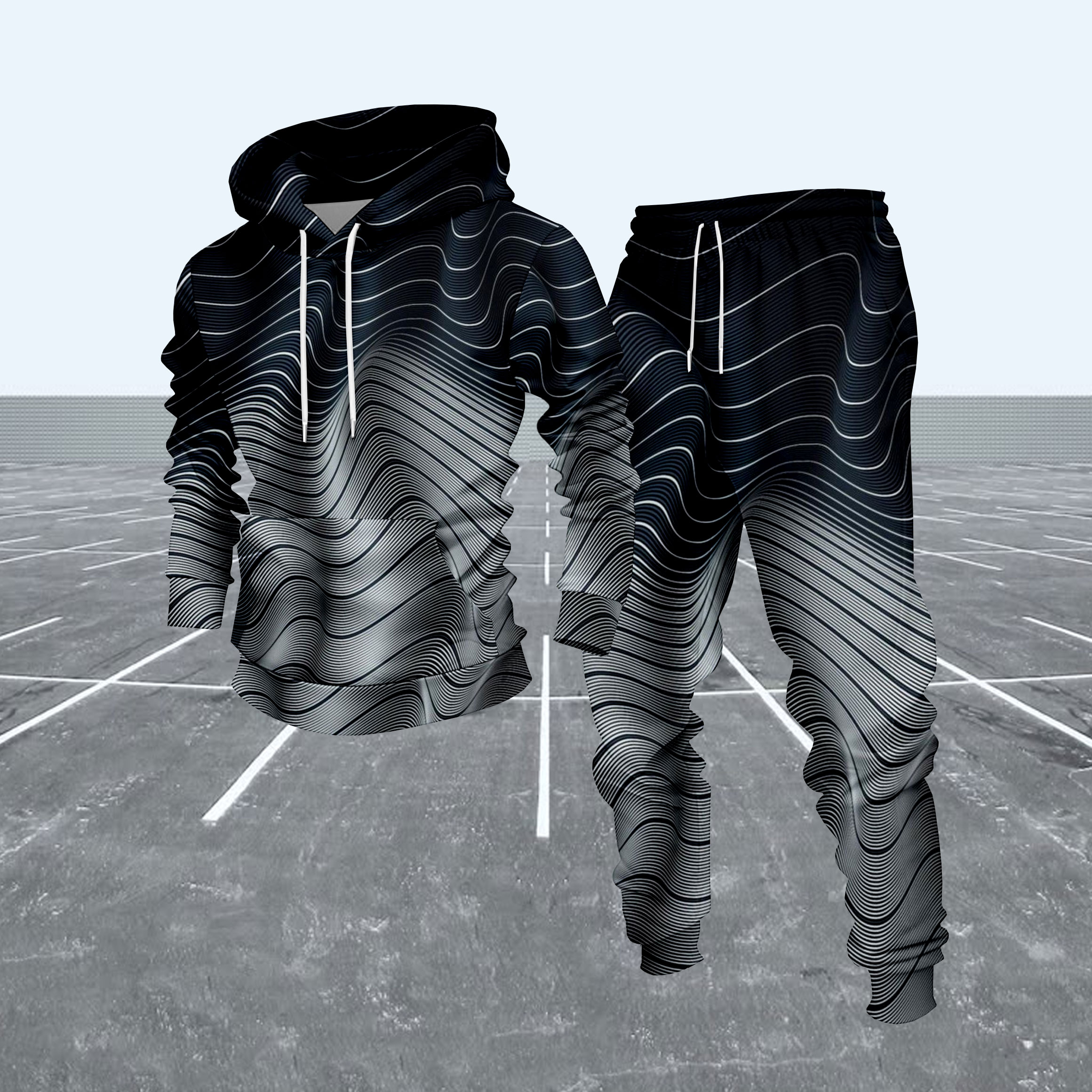 Men's Casual Gray & Navy Gradient Striped Pattern Hoodies Long Sleeved Sweatshirts & Sweatpants Two-Piece Set
