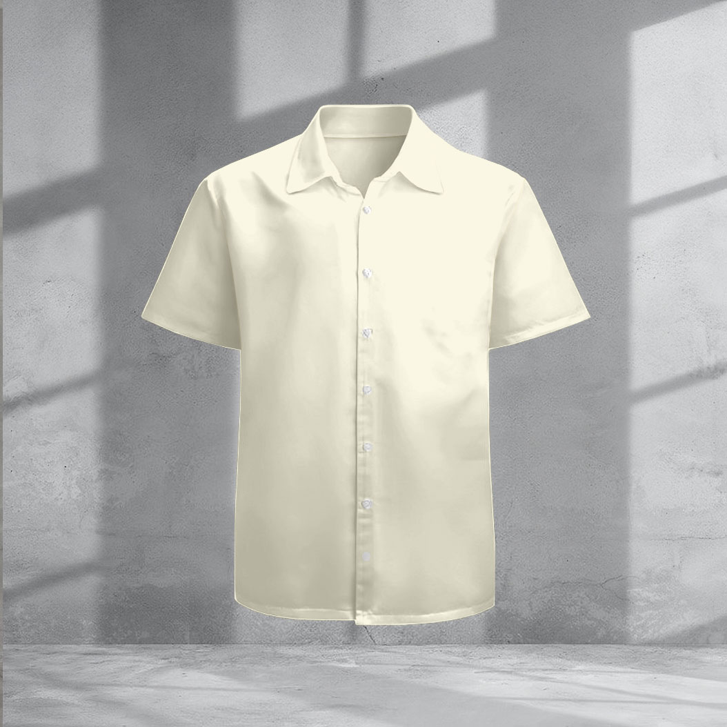 Men's Casual Light Yellow Color Short-Sleeve Shirt