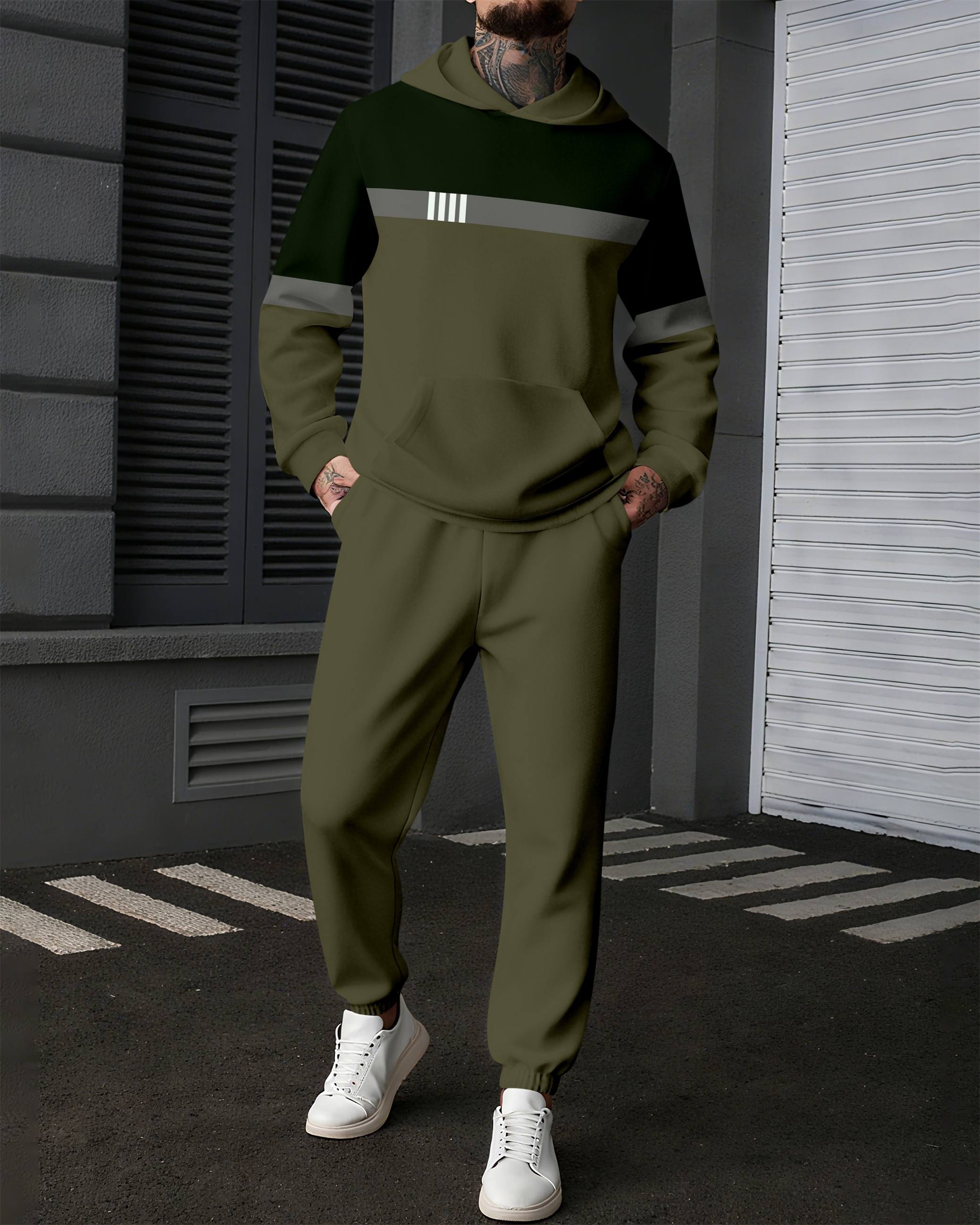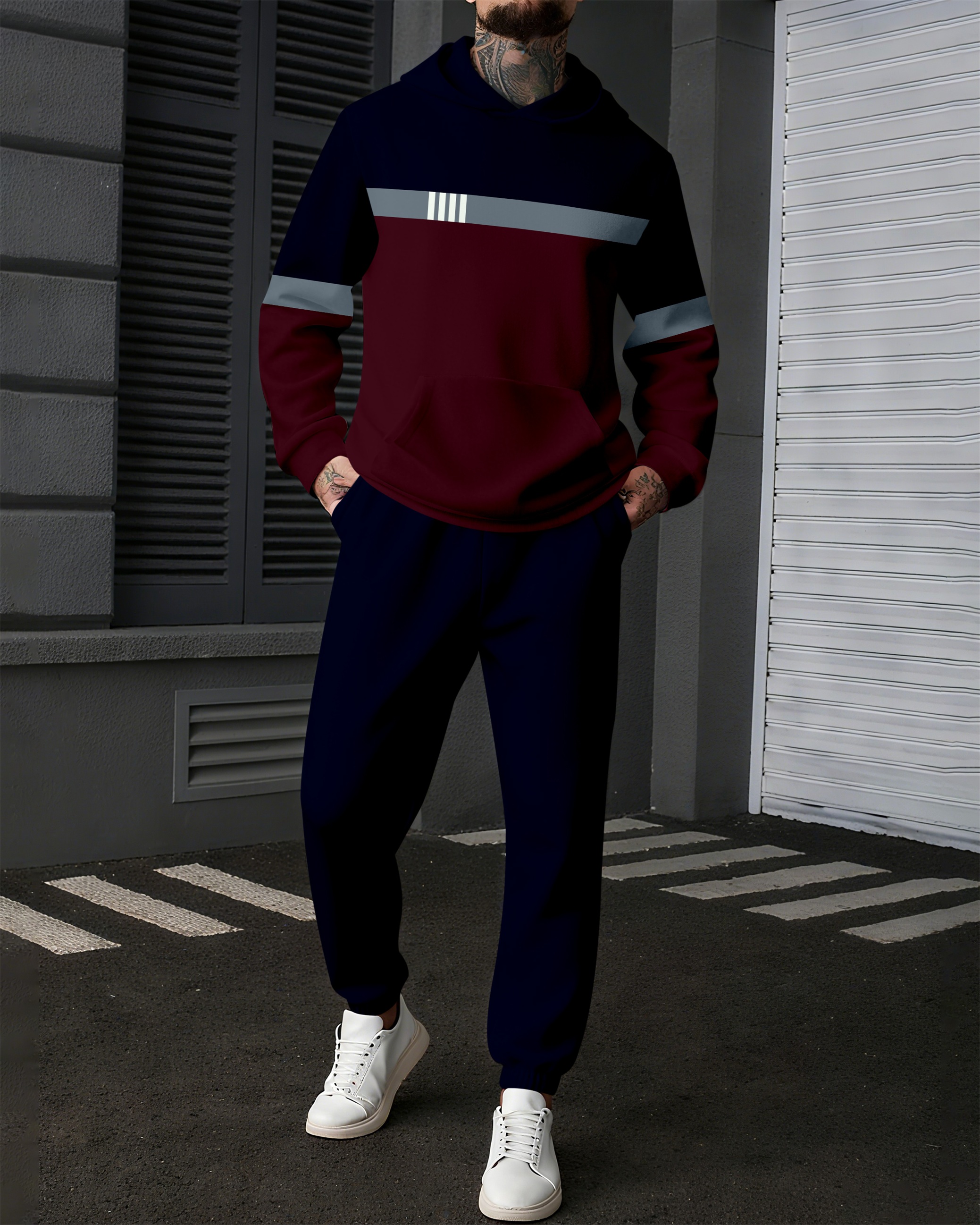Men's Colorblock Sports Casual Hoodie Suit 1030