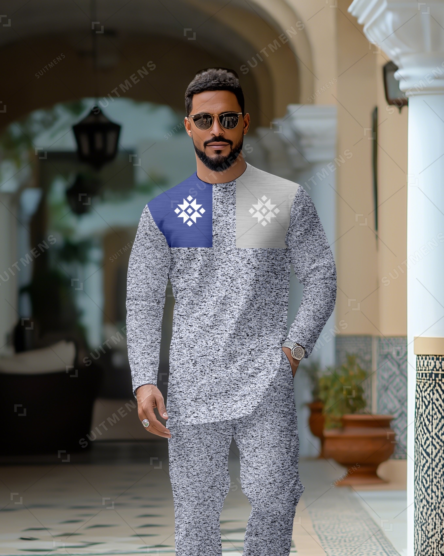 Men's Colorblock Striped Print Long Sleeve Walking Suit - 001