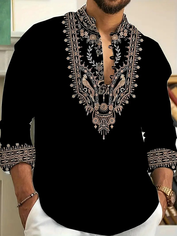 Men's Ethnic Style Pattern Long-Sleeved Shirts Tops