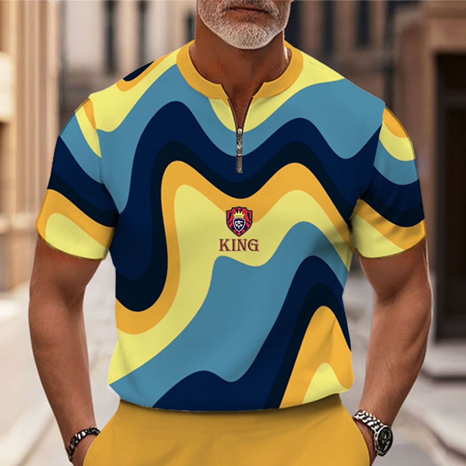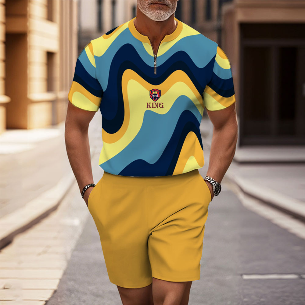 Men's Fashion Casual Round-Neck Geometric Printed Short-Sleeved Two-Piece Set