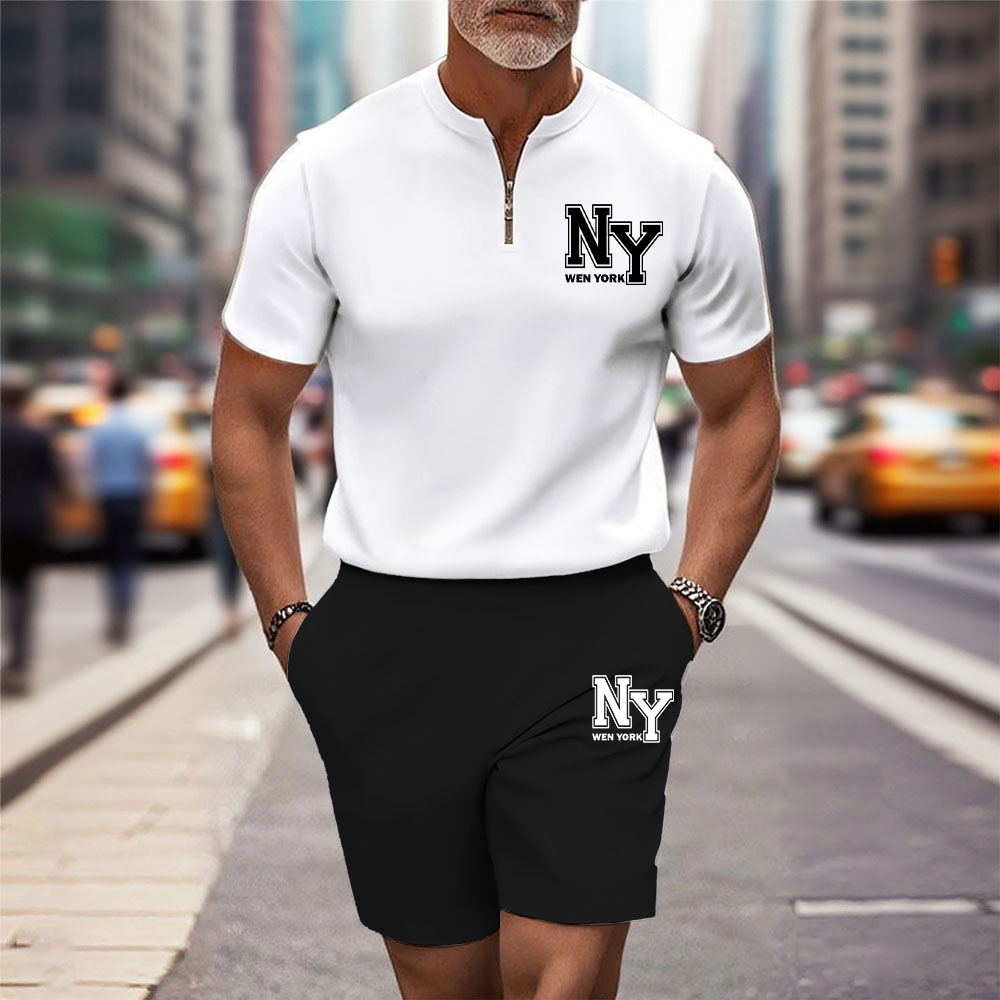Men's Fashion Casual Round-Neck Geometric Printed Short-Sleeved Two-Piece Set