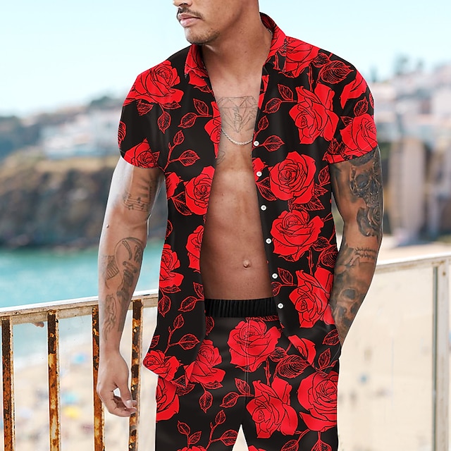 Pants Type:Shorts,Fabric:Polyester,Gender:Men's,Tops Type:Summer Hawaiian Shirt,Design:3D Print,Button-Down,Occasion:Beach,Outdoor,Vacation,Style:Casual,Designer,Beach,Fashion,Hawaiian,Comfortable,Print Type:3D Print,Category:Shirt,Fit Type:Regular Fit,Neckline:Turndown,Sleeve Length:Short Sleeve,Look After Me:Washable,Hand wash,Wet and Dry Cleaning,Pattern:Floral,Rose,Season:Summer,Spring,Bust (cm):S:106;M:112;L:118;XL:124;2XL:132;3XL:140;4XL:148,Length (cm):S:73;M:75;L:77;XL:79;2XL:81;3XL:83;4XL:85,Sleeve Length (cm):S:20.5;M:21;L:21.5;XL:22;2XL:22.5;3XL:23;4XL:23.5,Waist (cm):S:65;M:76;L:81;XL:86;2XL:93;3XL:100;4XL:107,Fit EU Size:S:46;M:48;L:50;XL:52;2XL:54;3XL:56;4XL:58,Fit UK Size:S:36;M:38;L:40;XL:42;2XL:44;3XL:46;4XL:48,Quantity:2pcs,Pants Length:Short Pants,Age Group:Adults',Fit US Size:S:36;M:38;L:40;XL:42;2XL:44;3XL:46;4XL:48,Front page:FF,