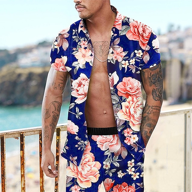 Fabric:Polyester,Pants Type:Shorts,Tops Type:Aloha Shirt,Summer Hawaiian Shirt,Shirt Set,Gender:Men's,Design:3D Print,Button-Down,Occasion:Going out,Casual,Holiday,Vacation,Outdoor,Beach,Style:Fashion,Hawaiian,Comfortable,Beach,Casual,Print Type:3D Print,Category:Shirt,Fit Type:Regular Fit,Neckline:Turndown,Sleeve Length:Short Sleeve,Look After Me:Wet and Dry Cleaning,Washable,Hand wash,Pattern:Floral,Season:Spring,Summer,Bust (cm):S:106;M:112;L:118;XL:124;2XL:132;3XL:140;4XL:148,Length (cm):S:73;M:75;L:77;XL:79;2XL:81;3XL:83;4XL:85,Hips (cm):S:108;M:114;L:120;XL:126;2XL:134;3XL:142;4XL:150,Waist (cm):S:65;M:76;L:81;XL:86;2XL:93;3XL:100;4XL:107,Sleeve Length (cm):S:20.5;M:21;L:21.5;XL:22;2XL:22.5;3XL:23;4XL:23.5,Length [Bottom] (cm):S:48;M:49;L:50;XL:51;2XL:52;3XL:53;4XL:54,Fit EU Size:S:46;M:48;L:50;XL:52;2XL:54;3XL:56;4XL:58,Fit UK Size:S:36;M:38;L:40;XL:42;2XL:44;3XL:46;4XL:48,Age Group:Adults',Fit US Size:S:36;M:38;L:40;XL:42;2XL:44;3XL:46;4XL:48,Front page:FF,