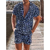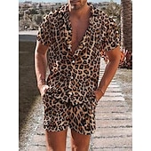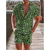 Pants Type:Shorts,Fabric:Polyester,Gender:Men's,Tops Type:Summer Hawaiian Shirt,Design:Print,Occasion:Beach,Casual,Holiday,Style:Hawaiian,Comfortable,Fashion,Tropical,Designer,Category:Shirt,Fit Type:Regular Fit,Neckline:Turndown,Sleeve Length:Short Sleeve,Elasticity:Micro-elastic,Look After Me:Wet and Dry Cleaning,Washable,Pattern:Leopard,Season:Spring,Summer,Shoulder Width (cm):S:44.5;M:46;L:47.5;XL:49;XXL:51;3XL:53,Bust (cm):S:106;M:112;L:118;XL:124;XXL:132;3XL:140,Length (cm):S:73;M:75;L:77;XL:79;XXL:81;3XL:83,Hips (cm):S:106;M:112;L:118;XL:124;XXL:132;3XL:140,Waist (cm):S:71;M:76;L:81;XL:86;XXL:92;3XL:98,Sleeve Length (cm):S:20.5;M:21;L:21.5;XL:22;XXL:22.5;3XL:23,Length [Bottom] (cm):S:50;M:51;L:52;XL:53;XXL:54;3XL:55,Age Group:Adults',Quantity:2pcs,Pants Length:Short Pants,Front page:FF,