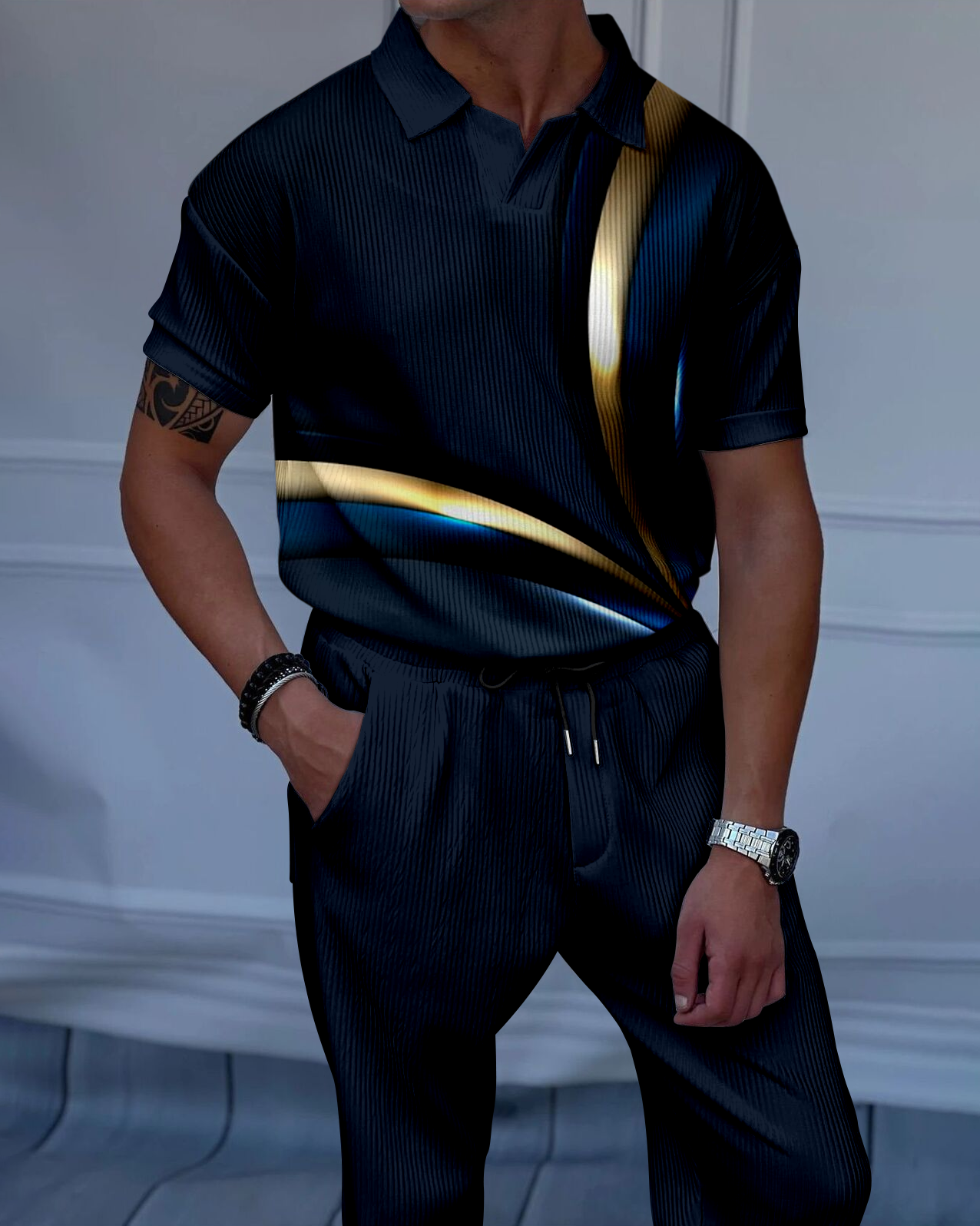 Men's Luxury Casual Textured Polo Short Sleeve Suit - 044