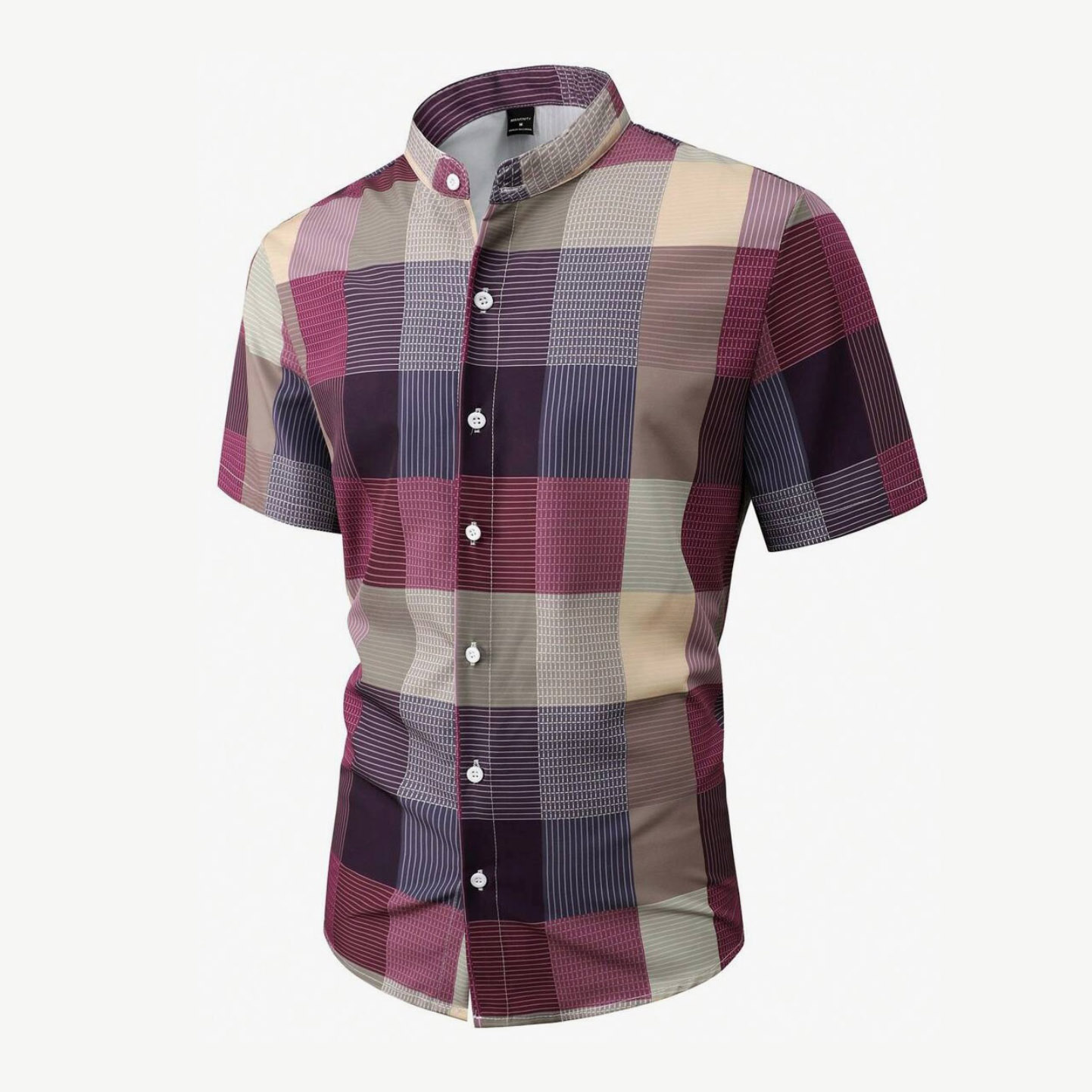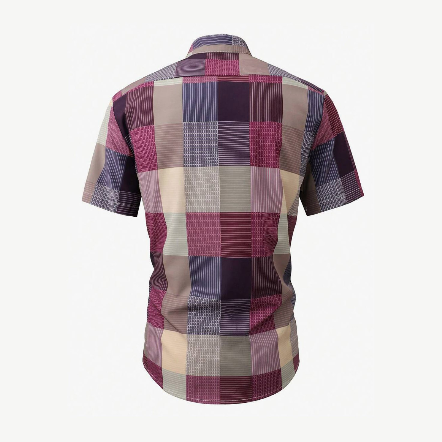 Men's Old Money Style Maroon Color Matching Checkered Short Sleeves Shirt