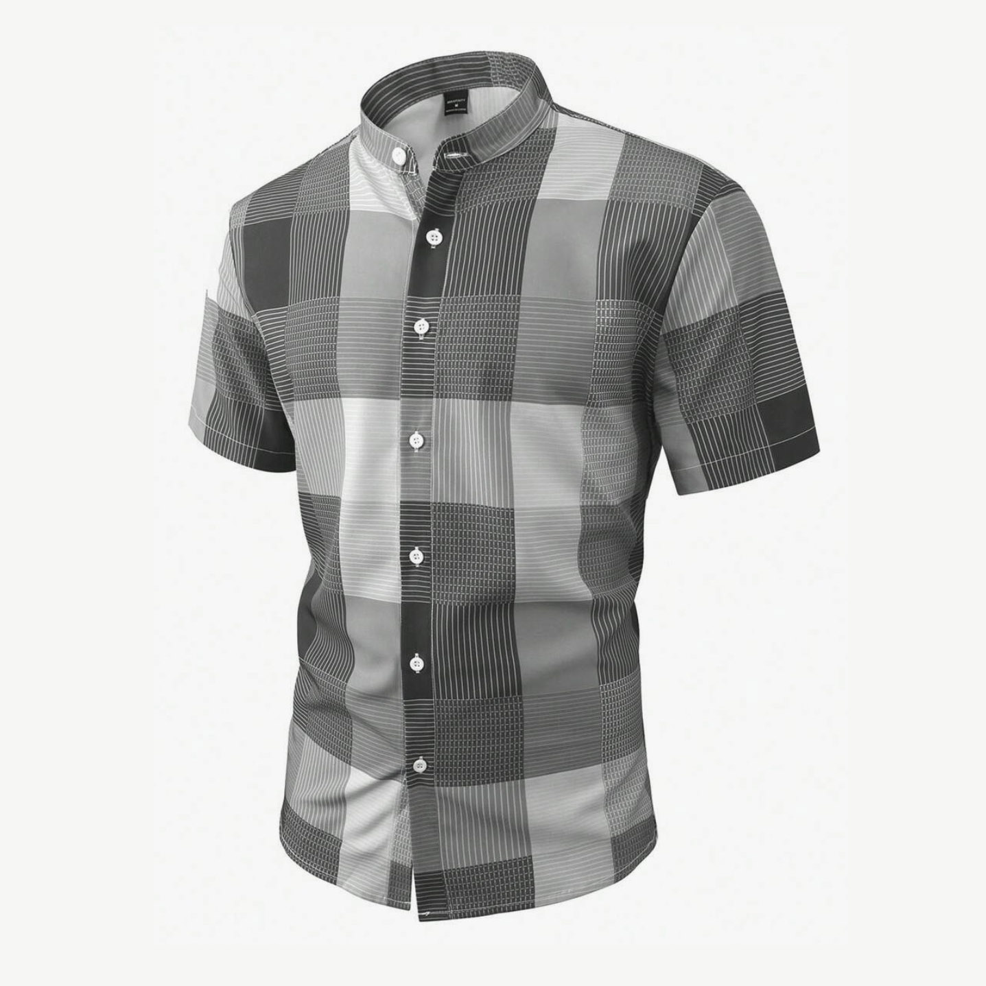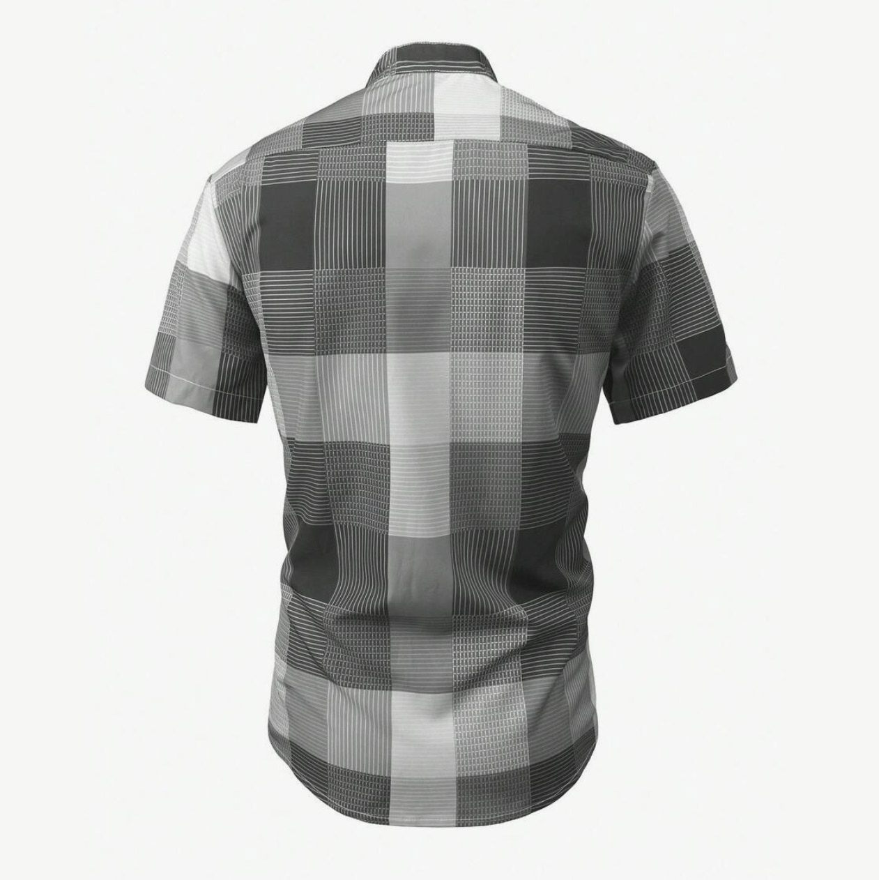 Men's Old Money Style Gray Color Matching Checkered Casual Short Sleeves Shirt